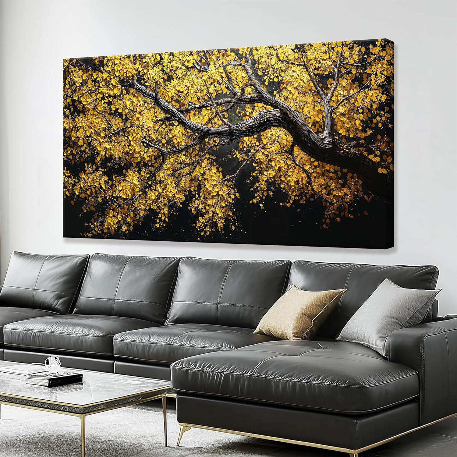 TAIJXAGSG Large Canvas Wall Art Decor For Living Room Pictures Gold Tree Wall Art Decoration Abstract Tree Plants Artwork Wall Art Modern Painting Pictures For Bedroom Home Kitchen Office 29"X 58"