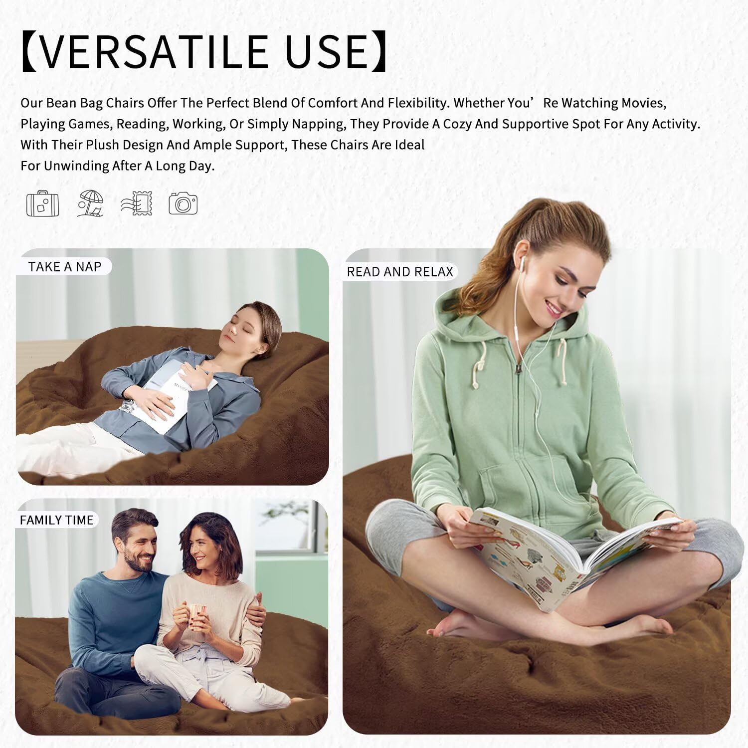 - 【Versatile Use】Our Bean Bag Chairs Offer The Perfect Blend Of Comfort And Flexibility. Whether You’Re Watching Movies, Playing Games, Reading, Working, Or Simply Napping, They Provide A Cozy And Supportive Spot For Any Activity. With Their Plush Design And Ample Support, These Chairs Are Ideal For Unwinding After A Long Day.