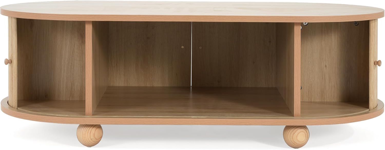 Oval Coffee Table with Storage for Living Room, Retro Charm Wooden Fluted Center Table, 47.24" Modern Classic Accordion Door Coffee Tables Dual Level Storage Side Table for Home,Office-Natural