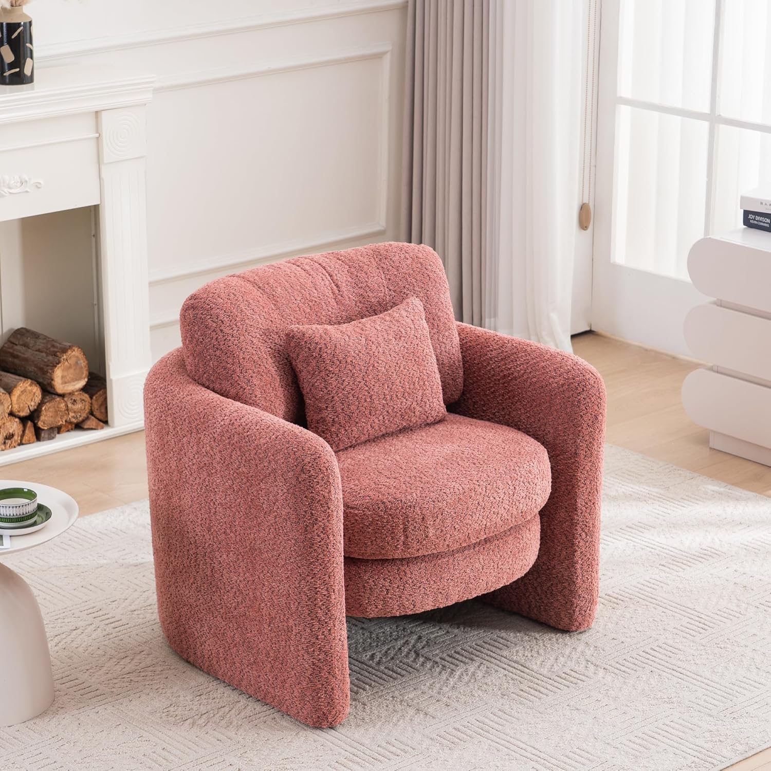 Chenille Accent Armchair Oversize Upholstered Barrel Comfy Modern Round Lounge Sofa Chair with Pillow Cozy Reading Chairs for Apartment,Office,Living Room,Dining,Makeup,Club,Pink