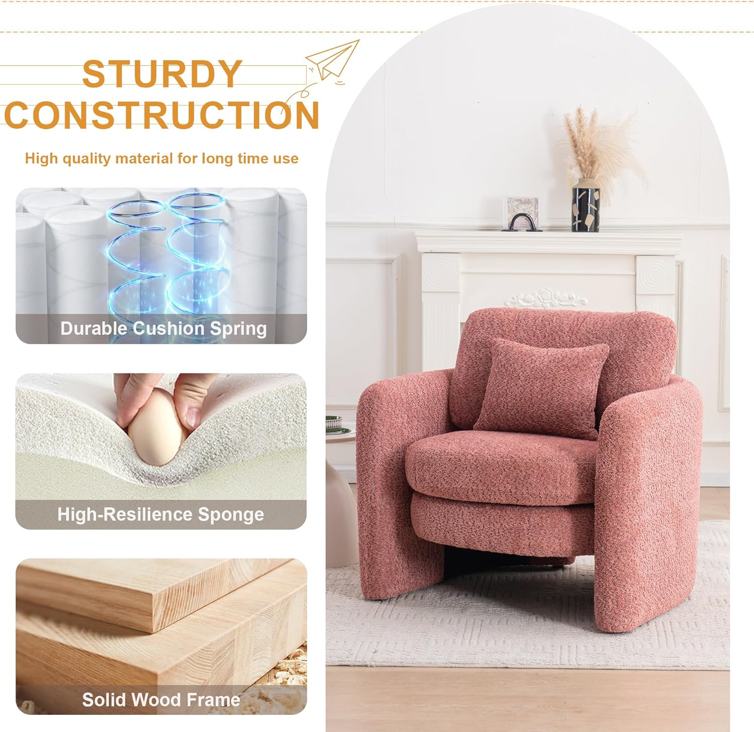 - 【Chenille Fabric】:Our armchair is made of chenille fabric, which absorbs moisture and perspiration in summer, keeps warm and comfortable in winter, and is filled with high elastic cotton, so it will not collapse even if you sit for 8 hours.