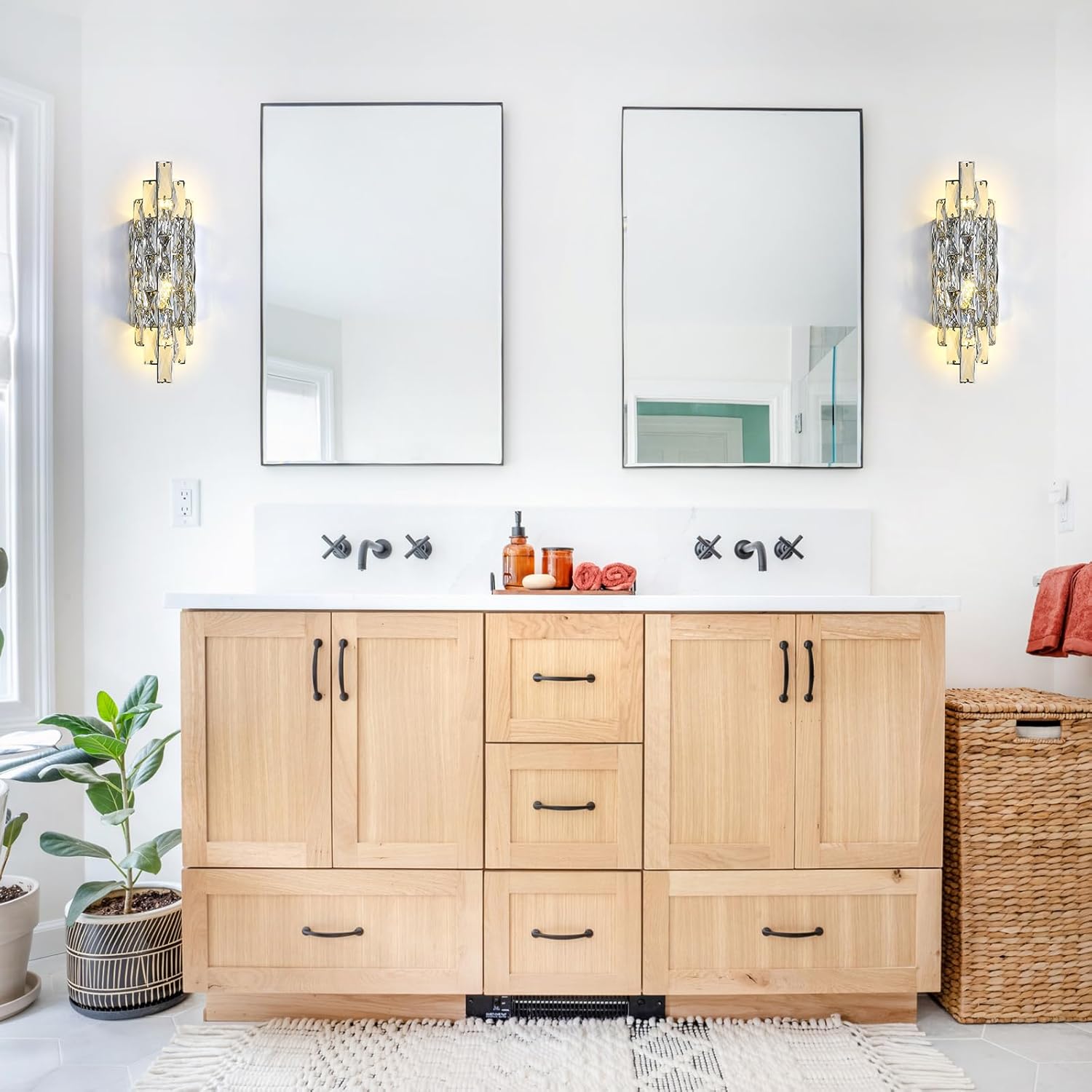 Modern Chrome Crystal Wall Sconce Light Fixtures, Wall Mount Lamps for Bedroom Living Room Bathroom Vanity Mirror