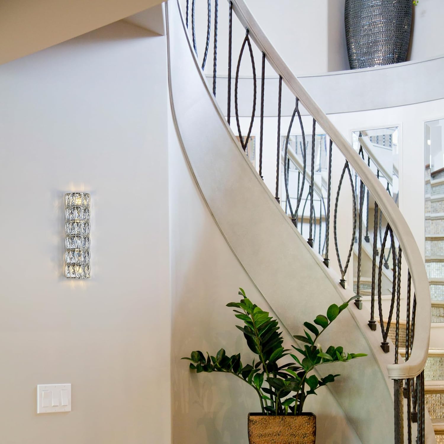 - 【Elegant design】This wall sconce features a tube-shaped lampshade with 6-layer elegant crystal blocks and is dressed in chrome finish, showing an elegant modern style and adding a touch of brilliant view to your interior home.