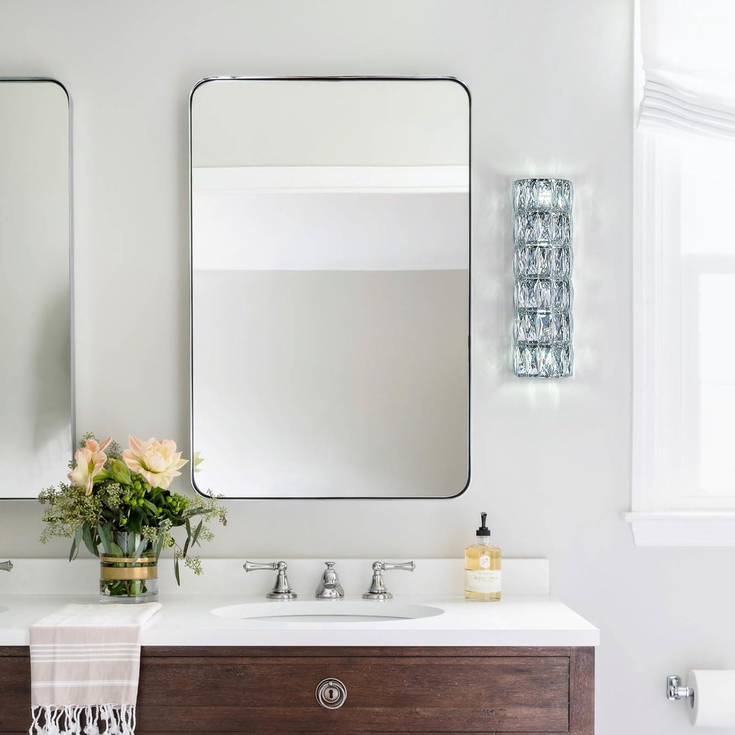 - 【Widely Application】This crystal wall light is ideal for the bathroom, over-vanity mirror, bedroom, dressing table, living room, hallway, foyer, porch, kitchen, and more.