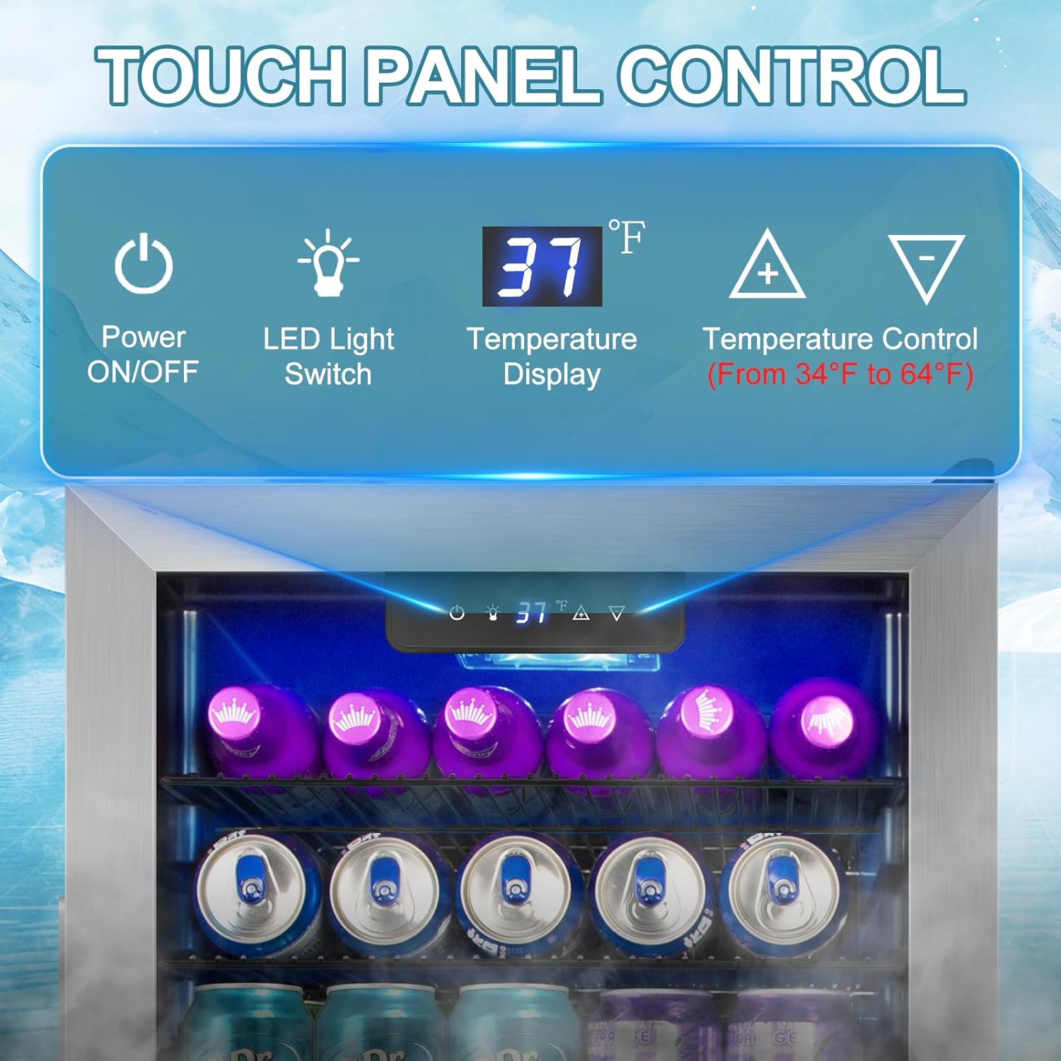 - SMART TOUCH CONTROL PANEL: The mini beverage fridge features a user-friendly touch control panel for easy temperature adjustments (34° F–64° F), giving you full control over your cooling experience and complementing modern lifestyles.