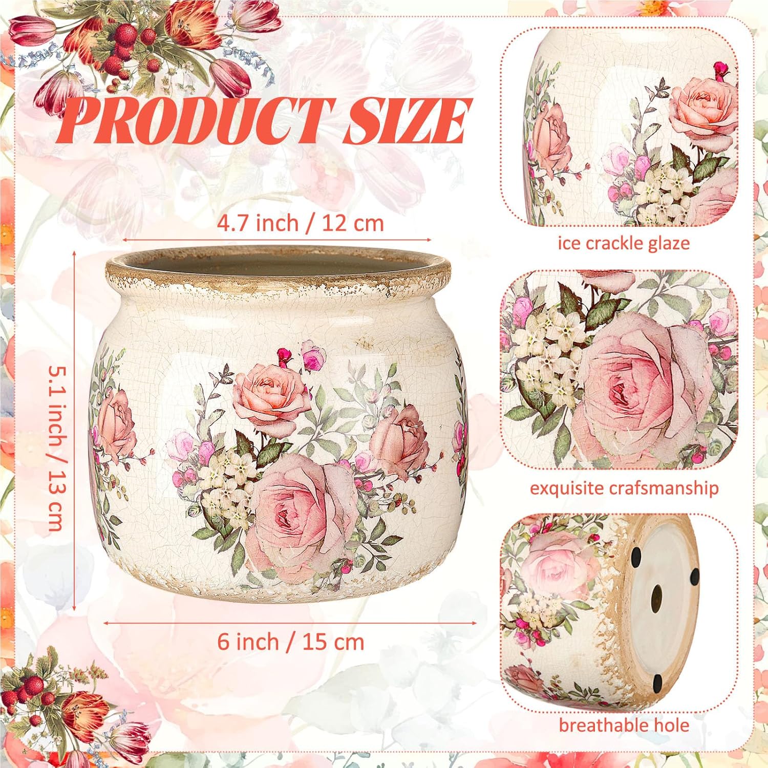 - Planters for Indoor Plants: this vintage plant pot measures 5.9 x 5.1 inches / 15 x 13 cm, giving you adequate space to house your indoor plants, suitable for shelves, coffee tables, or window sills; Its European rose vintage pattern design ties together interior decor, making the planter a nice centerpiece and embellishing your space with a taste of antiquity
