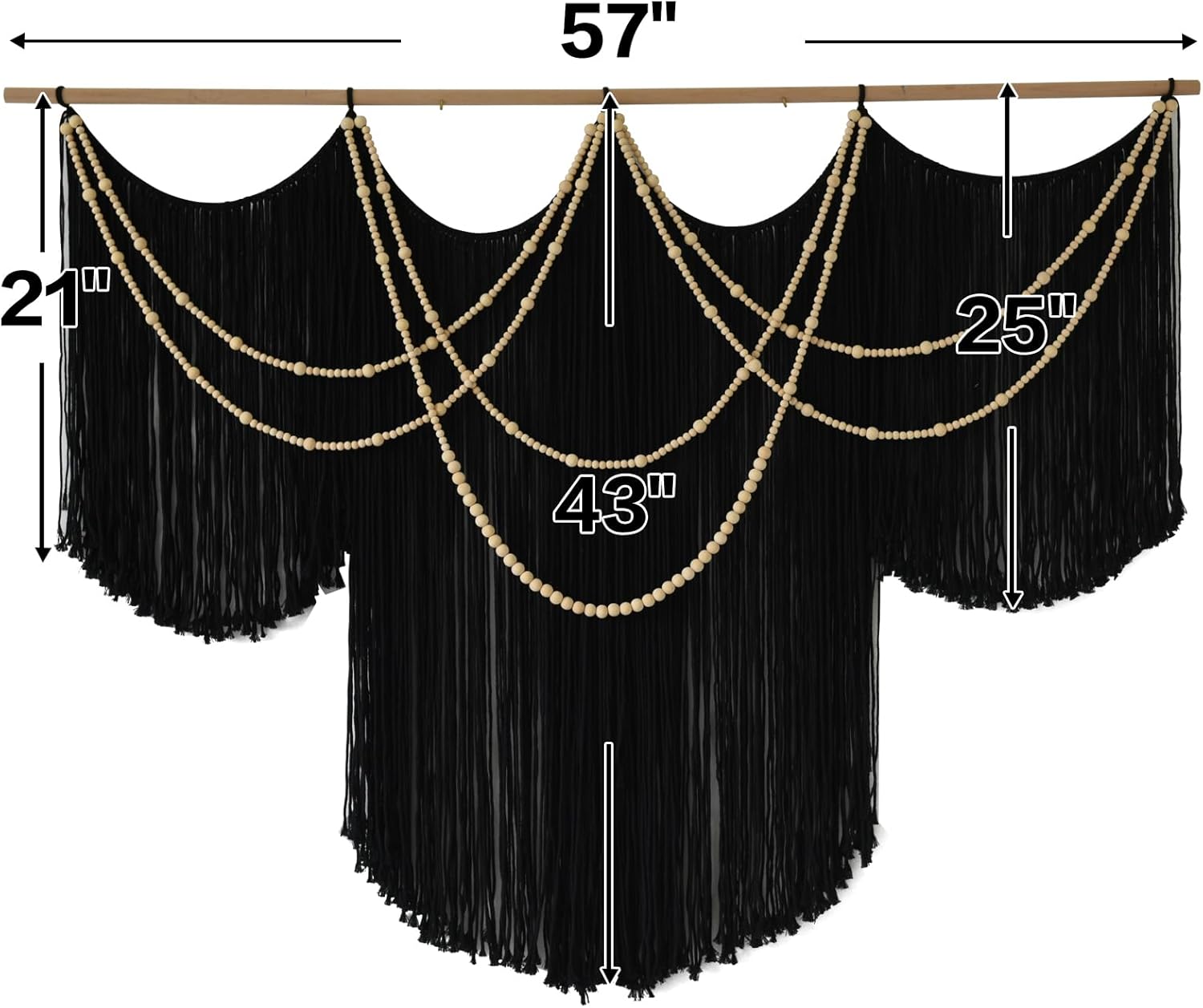 - 【Handwoven with Natural Texture】Handmade with 100% black cotton cord and natural wood beads, this fiber art piece showcases meticulous craftsmanship and adds organic texture to your interior styling.