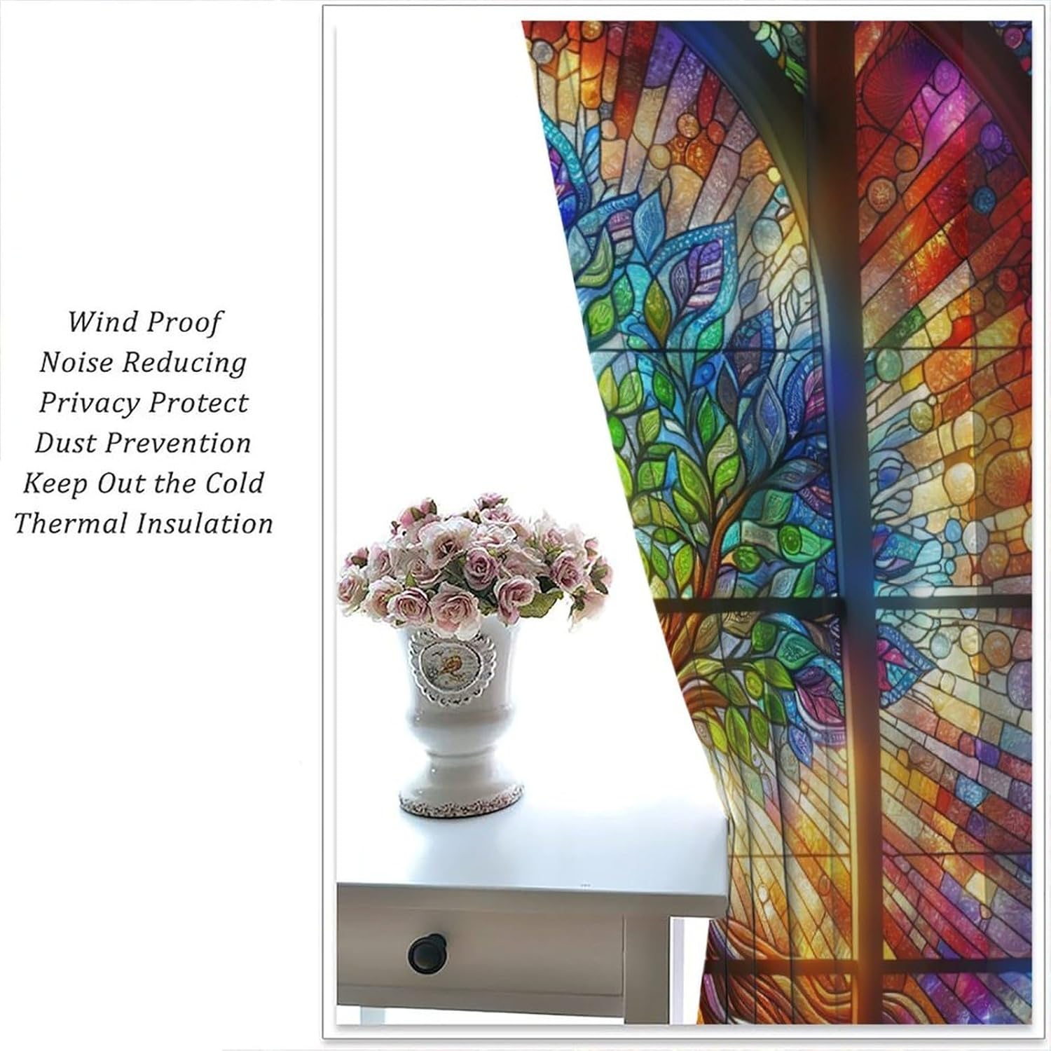 Stained Glass Curtains,Tree of Life Colorful Abstract Art Home Decor Drapes for Bedroom Living Room Kitchen Window Treatment 2 Panels Set Total Size 63" W X 72" L Inch