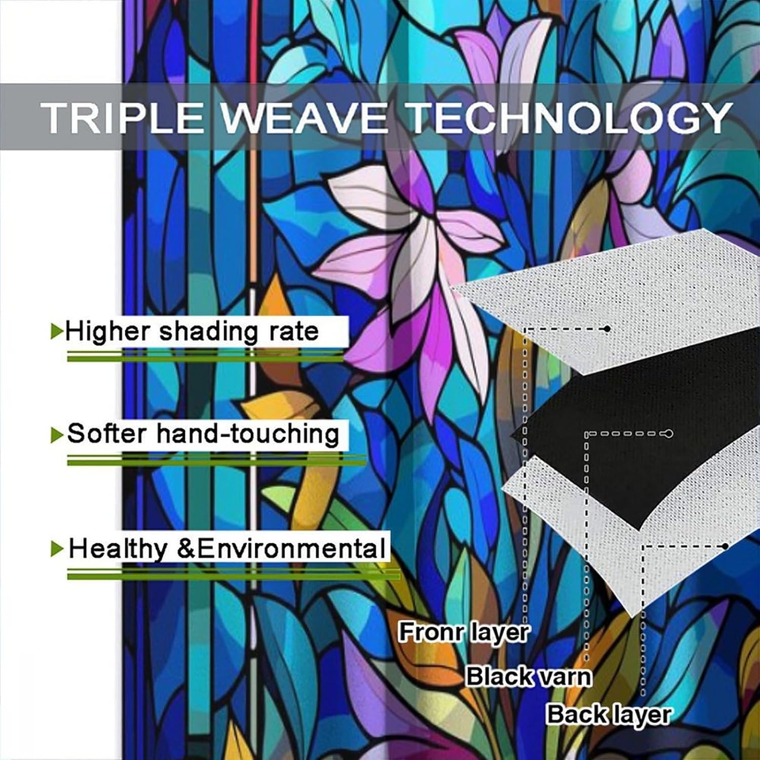 Stained Glass Curtains,Abstract Colorful Floral Geometric Art Home Decor Drapes for Bedroom Living Room Kitchen Window Treatment 2 Panels Set Total Size 63" W X 72" L Inch