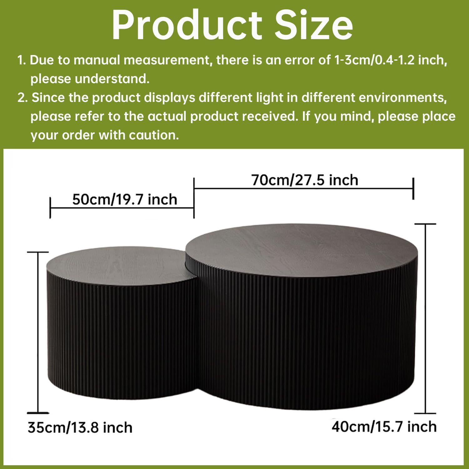 - Density Board Material: The round nesting coffee table is made from high-quality density board, ensuring excellent stability and load-bearing capacity, and the nesting coffee table circle is resistant to deformation. Moreover, the modern nesting coffee table is easy to clean and maintain with the smooth flat surface, providing a reliable experience whether placed in the living room or bedroom.