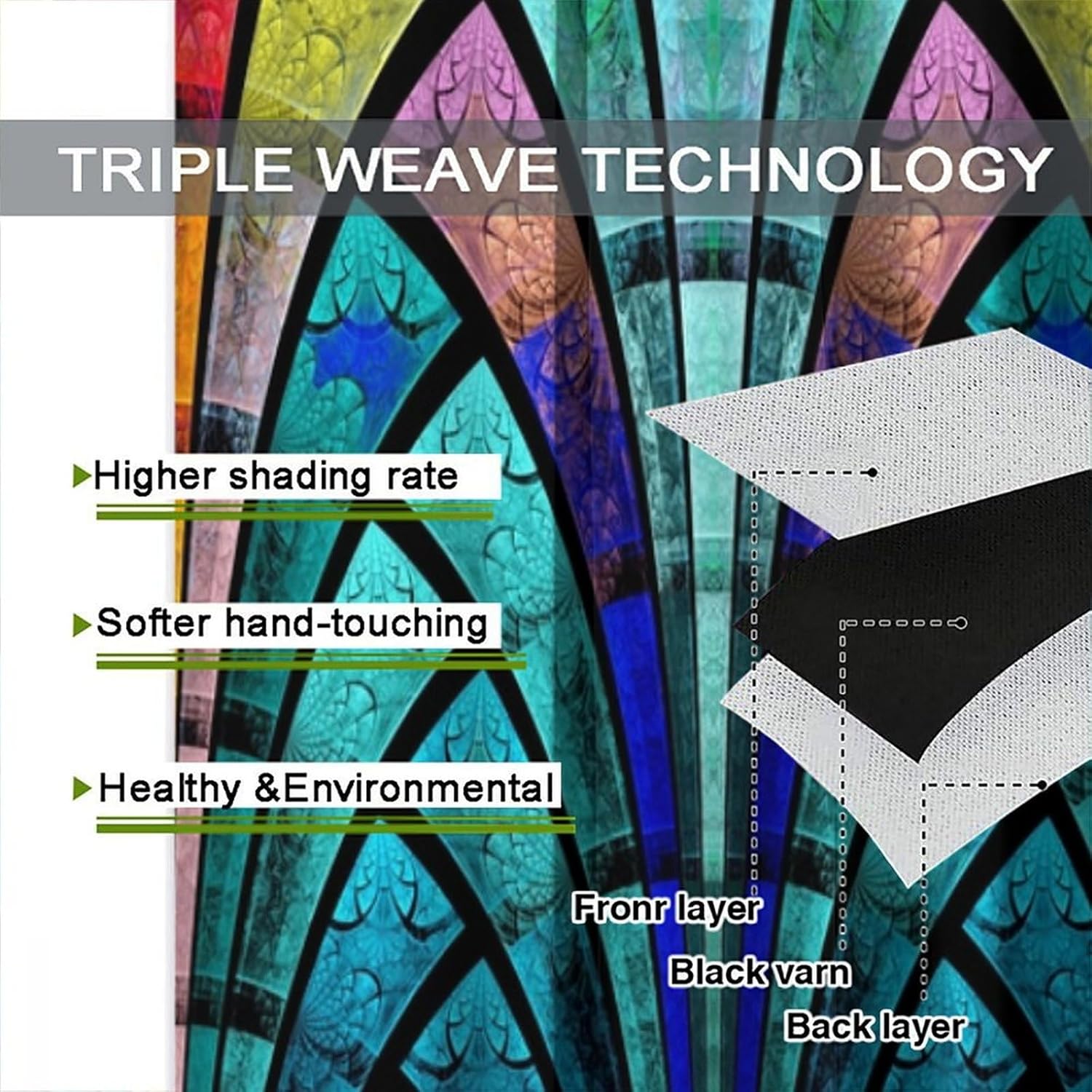 Stained Glass Curtains,Retro Design Style Colorful Abstract Art Home Decor Drapes for Bedroom Living Room Kitchen Window Treatment 2 Panels Set Total Size 63" W X 72" L Inch