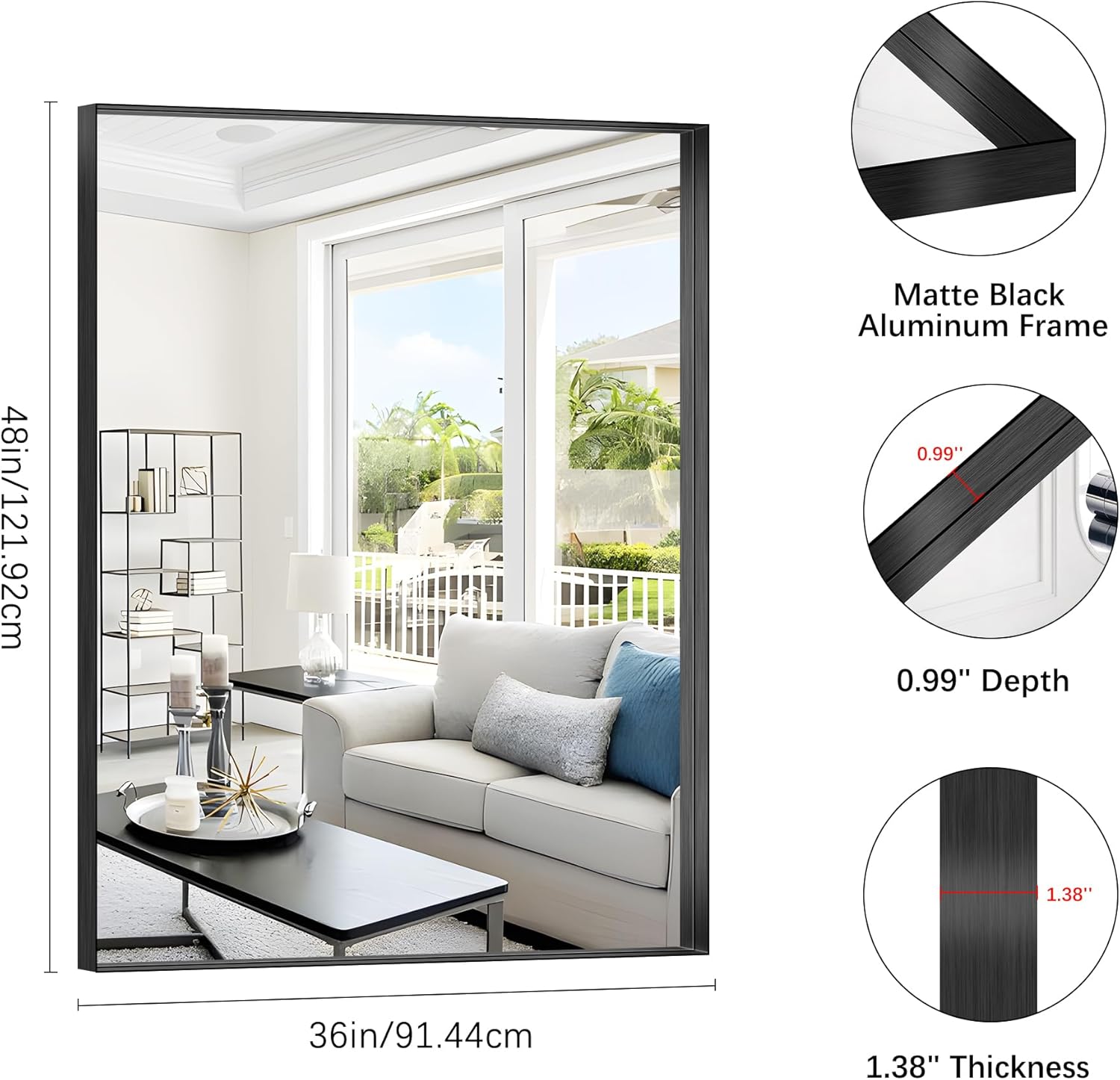 - Sleek & Sturdy Aluminum Alloy Frame: This elegant black bathroom mirror features a lightweight yet durable aluminum alloy frame, designed to resist deformation, chipping, and corrosion. The slim metallic profile adds a modern touch, elevating your space with a luxurious finish. Perfect as a wall-mounted or hanging mirror, it combines strength, style, and longevity.