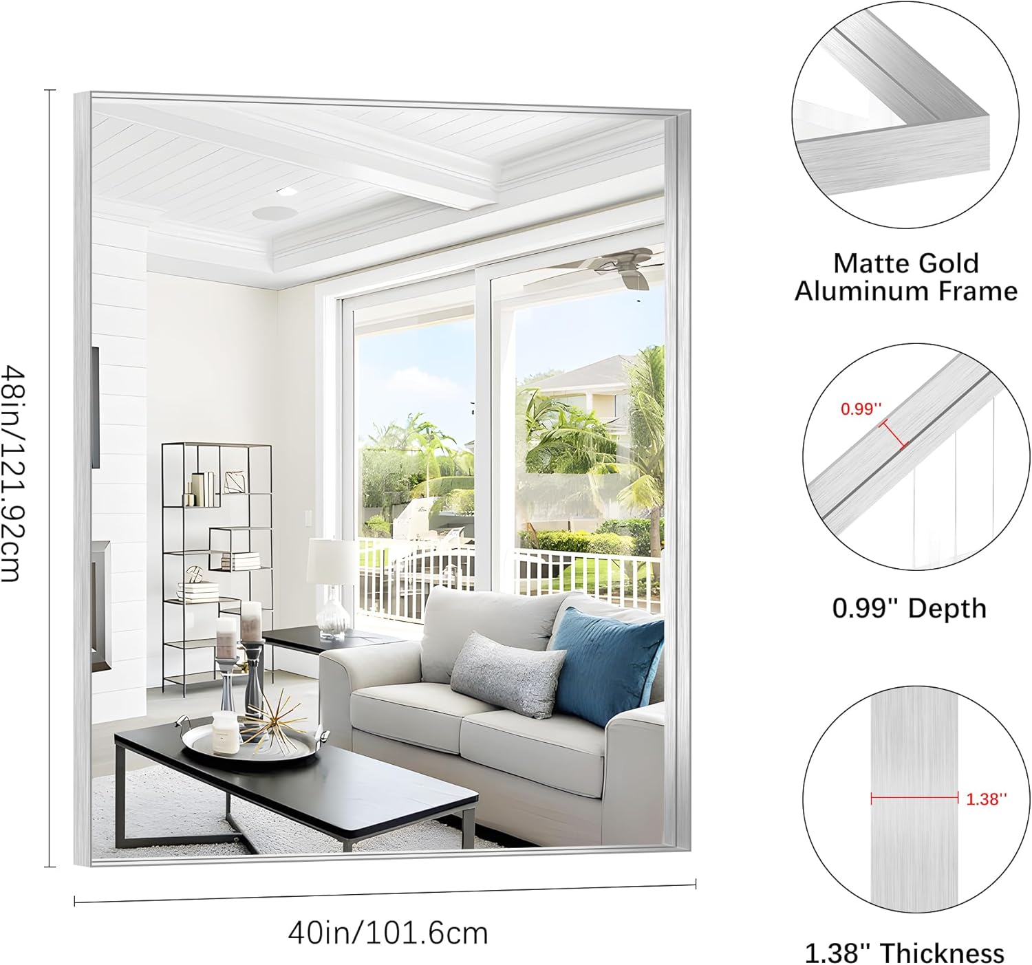 - Sleek & Sturdy Aluminum Alloy Frame This elegant silver bathroom mirror features a lightweight yet durable aluminum alloy frame, designed to resist deformation, chipping, and corrosion. The slim metallic profile adds a modern touch, elevating your space with a luxurious finish. Perfect as a wall-mounted or hanging mirror, it combines strength, style, and longevity
