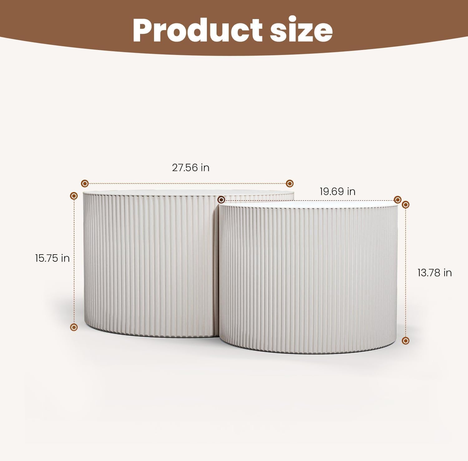 Round Nesting Coffee Table Wood Drum Nesting Tables Modern Stacking Coffee Table Set of 2 Fluted Center Table End Table for Living Room Home Office Small Spaces, No Assembling (White Large)