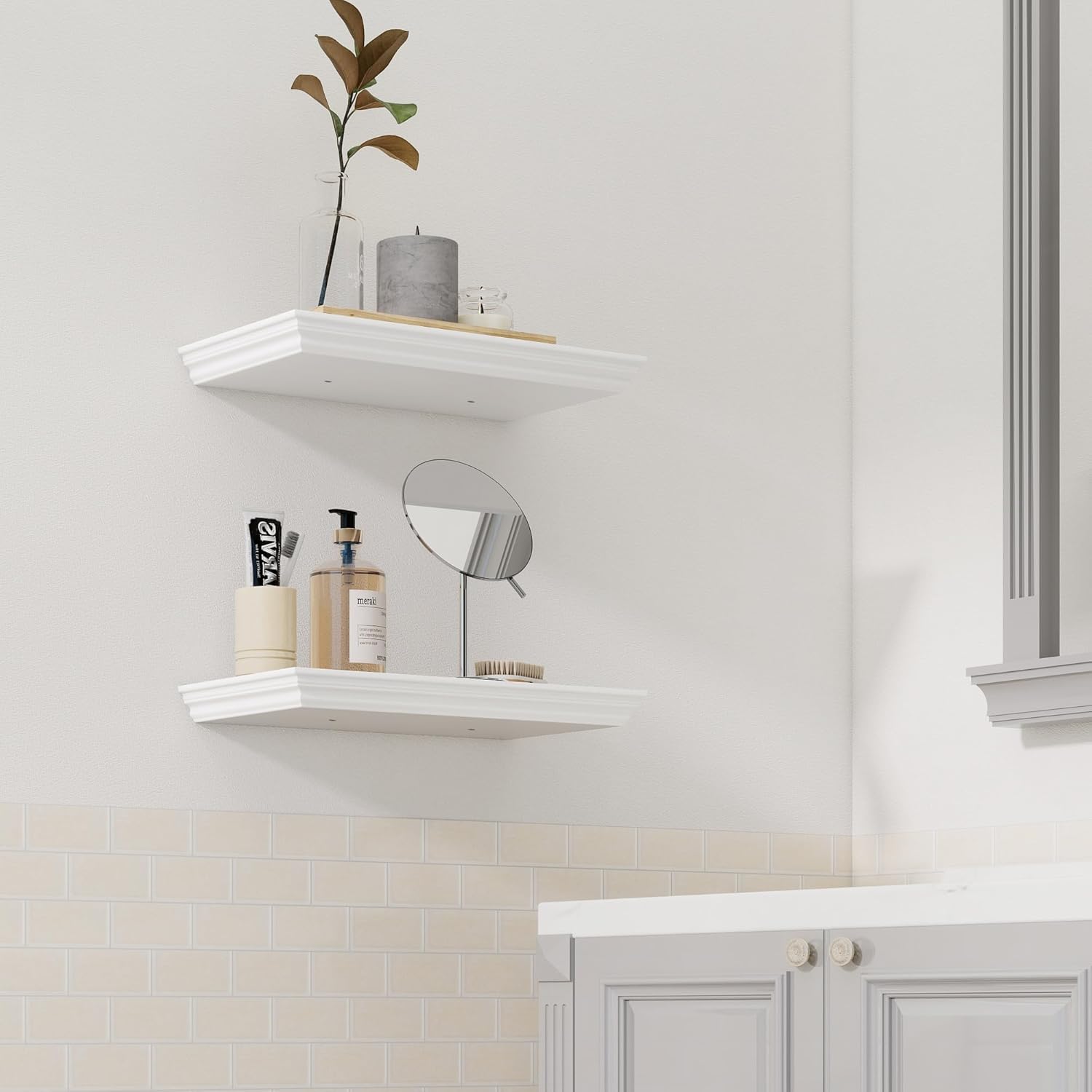 - Multi-Purpose Floating Shelves for Wall: Upgrade any space with these retro, sleek white shelves! Perfect as shelves for the room wall, book shelf for the wall, living Room, office, bedroom, bathroom, or kitchen shelves