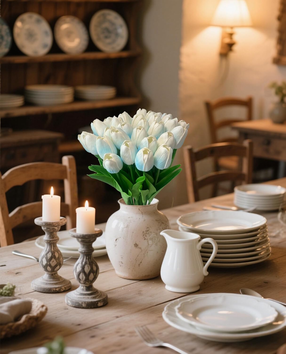 - EASY CARE: Compared with fresh tulips, our artificial tulips retain the beauty of fresh flowers and are easier to care for and durable. If there is any dust on the tulips, please gently wipe it with a damp cloth