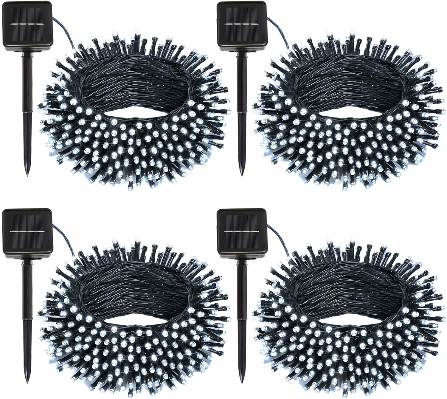 4 Pack Solar String Lights Outdoor, 400 LED Extra-Long 156Ft Solar Lights Outdoor with 8 Lighting Modes, IP65 Waterproof for Garden, Patio, Xmas, Balcony, Tree, Wedding, Party Decor (White)