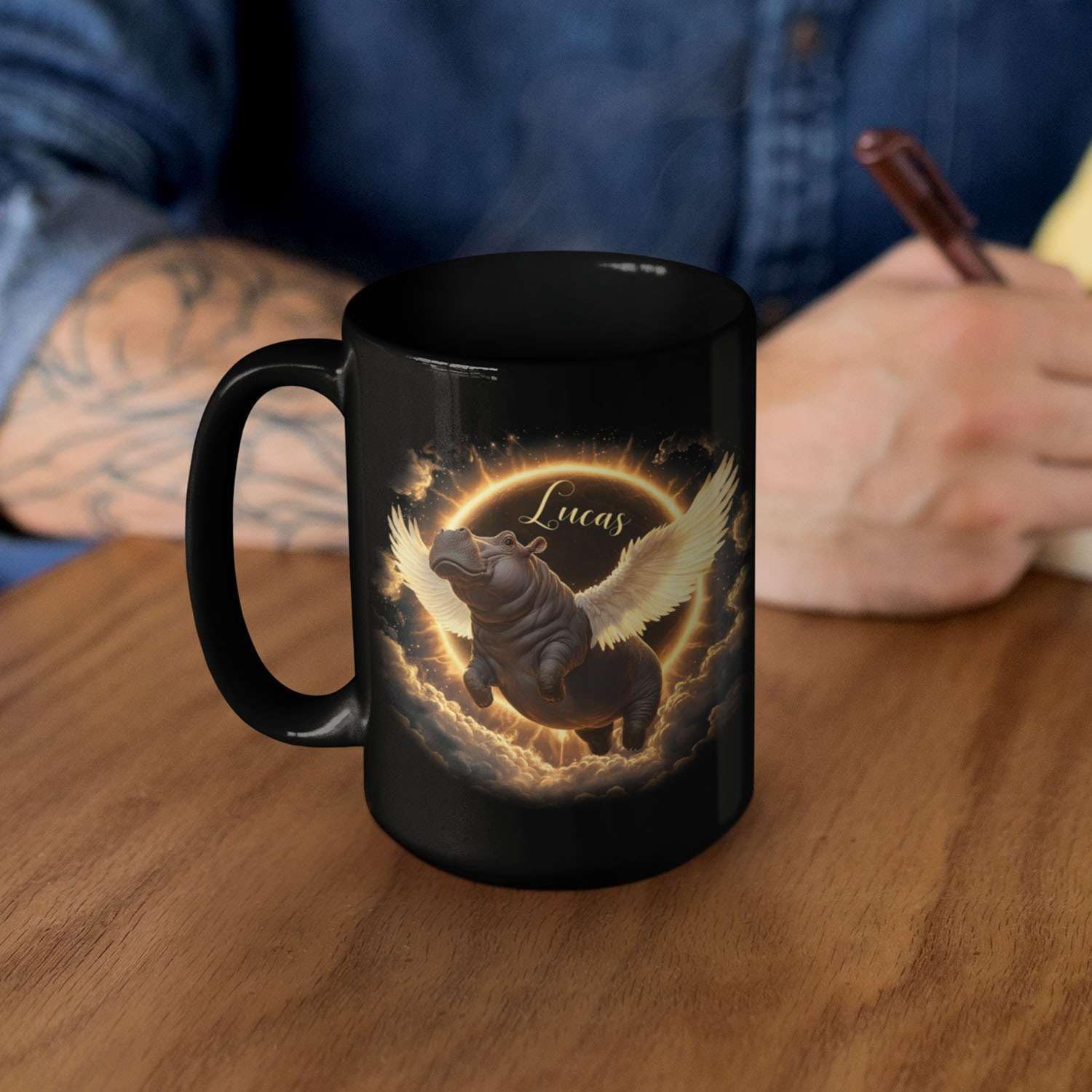- Uniquely Personalized: Delight kids and fantasy lovers with this Custom Hippo Coffee Mug featuring a whimsical hippo with wings design. Add a personalized name to create a magical black ceramic cup that’s for holiday gifting. A fun and charming mug for everyday use. Click "Customize Now" to make this enchanting animal-themed cup uniquely yours!