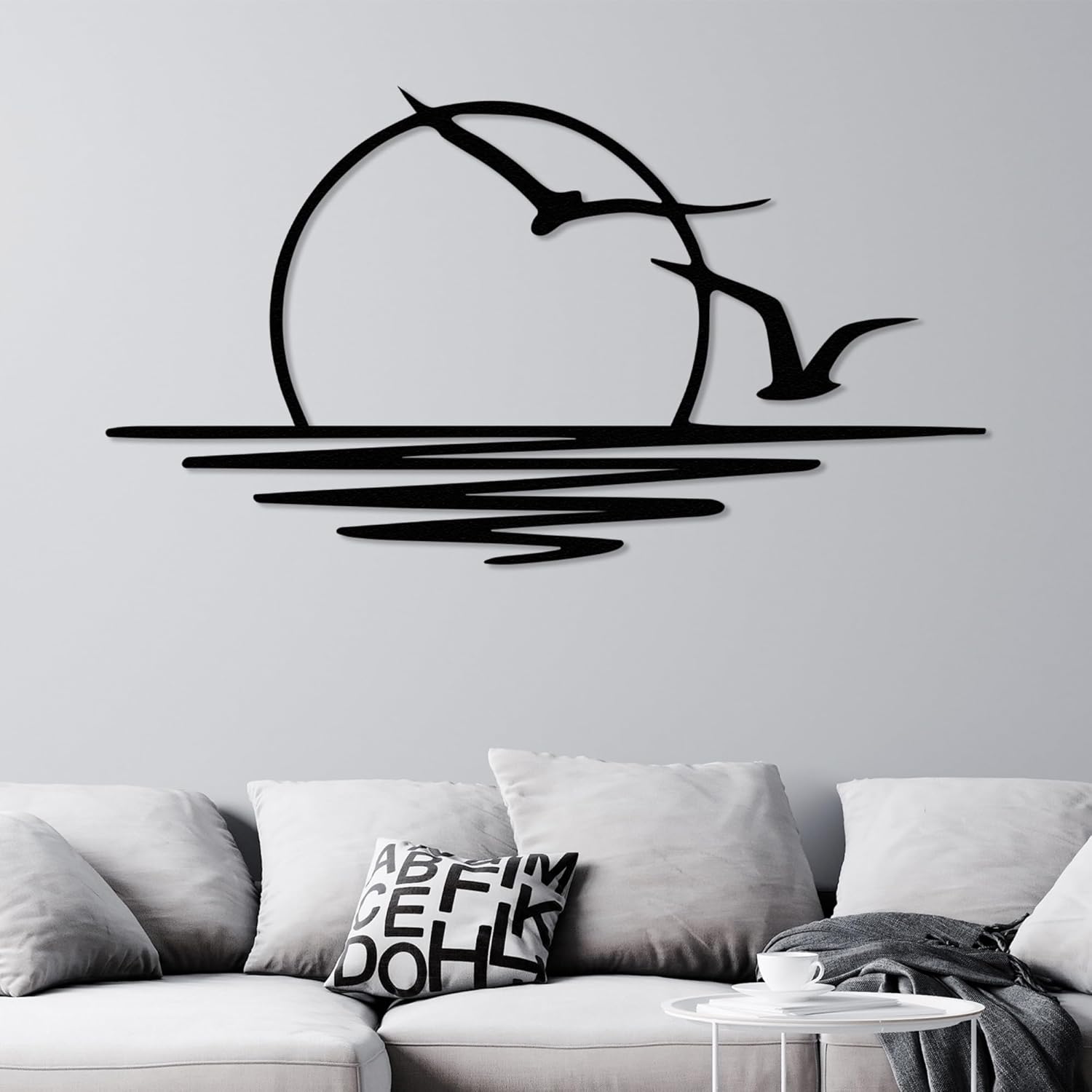 - CAPTIVATING SUNSET SCENE: Handcrafted metal wall art featuring a vibrant sunset scene with seagulls, perfect for adding coastal charm to any living room or bedroom.