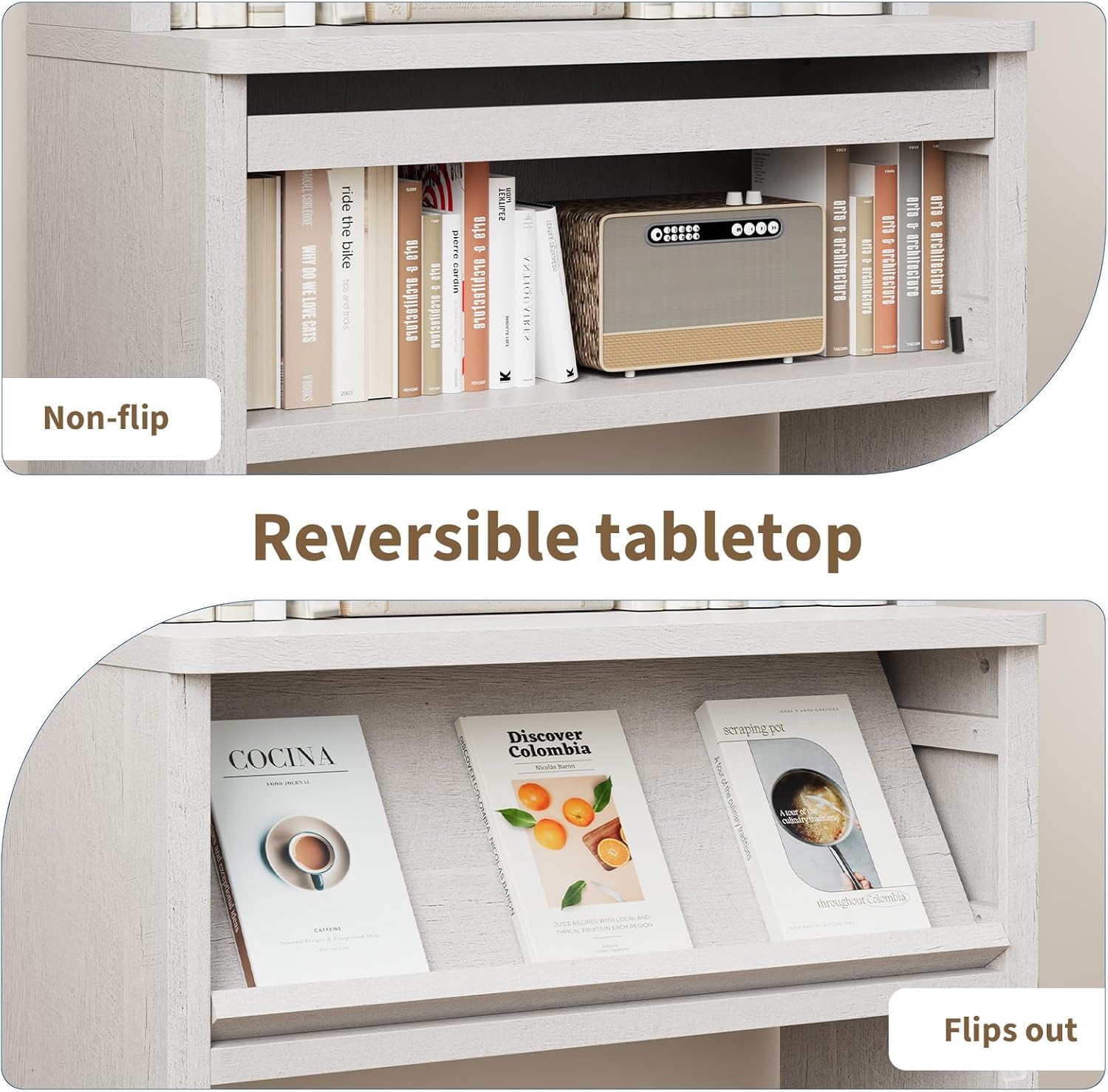 - 【Flip door design, a cabinet for multiple uses】 The fourth layer of the wooden book shelf with innovative reversible door layer, gently pushed out is a fashionable magazine rack, so that the beloved reading material within reach; closed in seconds into a standard bookshelf layer, does not take up space, at will to switch the reading and storage mode, practical and more obvious style.
