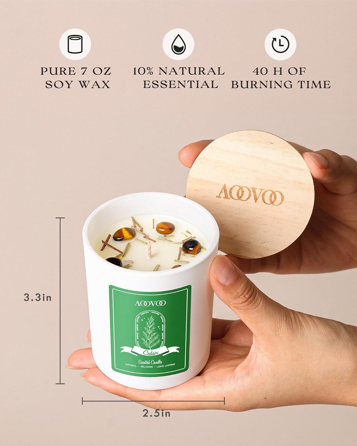 AOOVOO Winter Candles Set for Women - 4 Pack Candles for Home Scented, Aromatherapy Candle with Crystals, 28 oz 200 Hour Long Lasting Candle, Winter Fragrance of Cedar, Fir, Hot Cocoa, Vanilla Cake