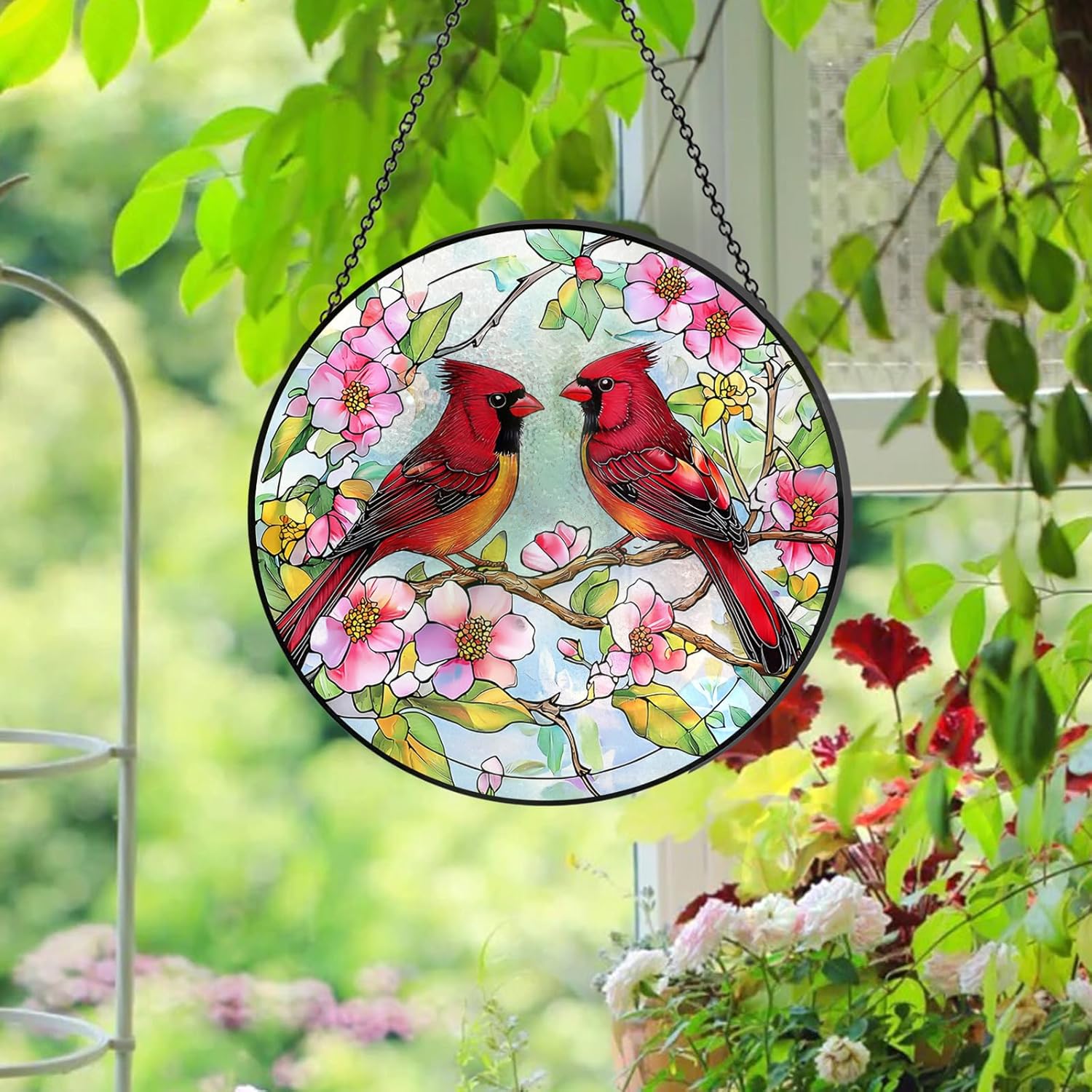 - Exquisite Design: Finished with vibrant stained glass, this Red Cardinal suncatcher captures sunlight beautifully, adding warmth to any space