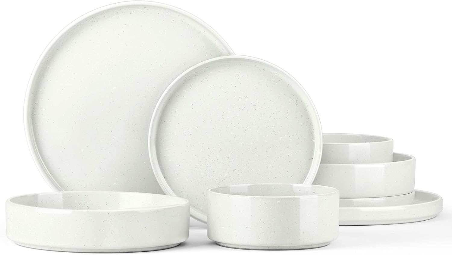 Stoneware Dinnerware Sets for 2, Onader Speckled Plates and Bowls, 8 Pieces Ceramic Dish Dinner Set with Pasta Bowl, Microwave & Dishwasher Safe - Cloud White