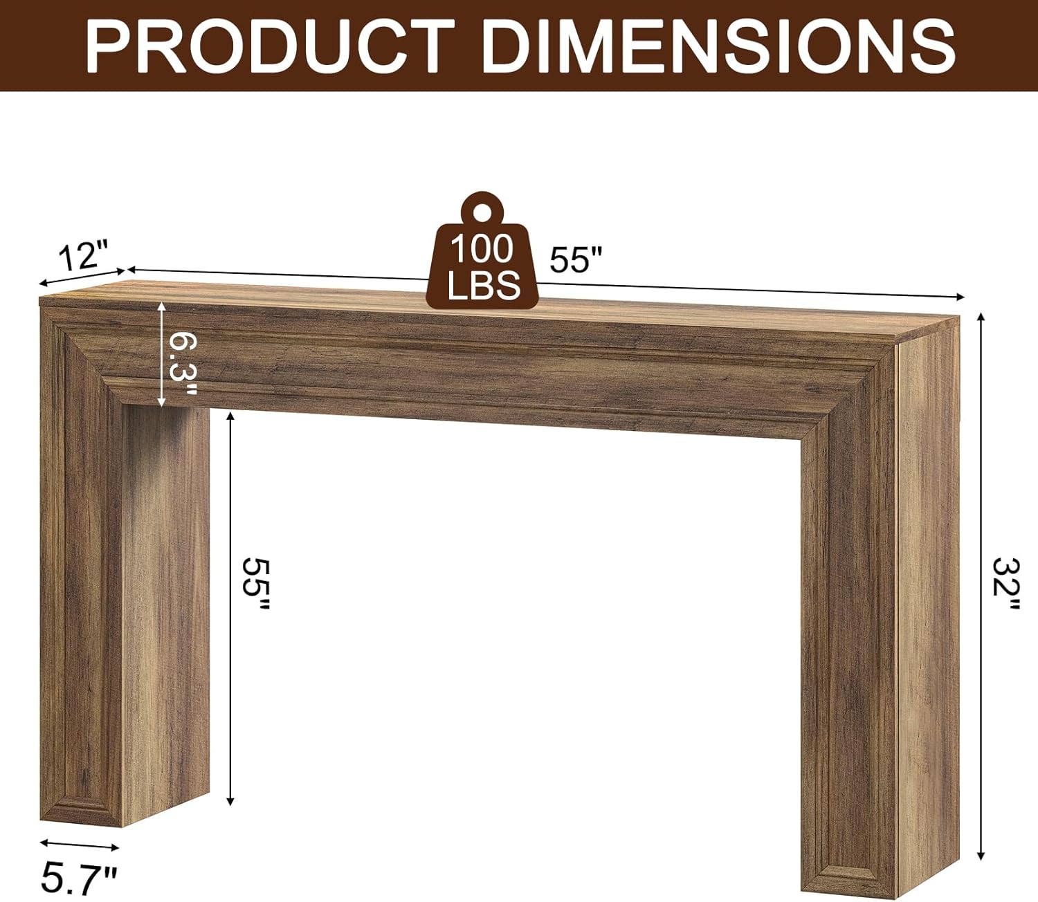 - CONSOLE TABLE WITH STORAGE: L 55 inches x W 11.8 inches x H 31.9 inches, this entryway console provides you with an ideal space to place and display your clutter and decorative items, keeping your home neat and organized.
