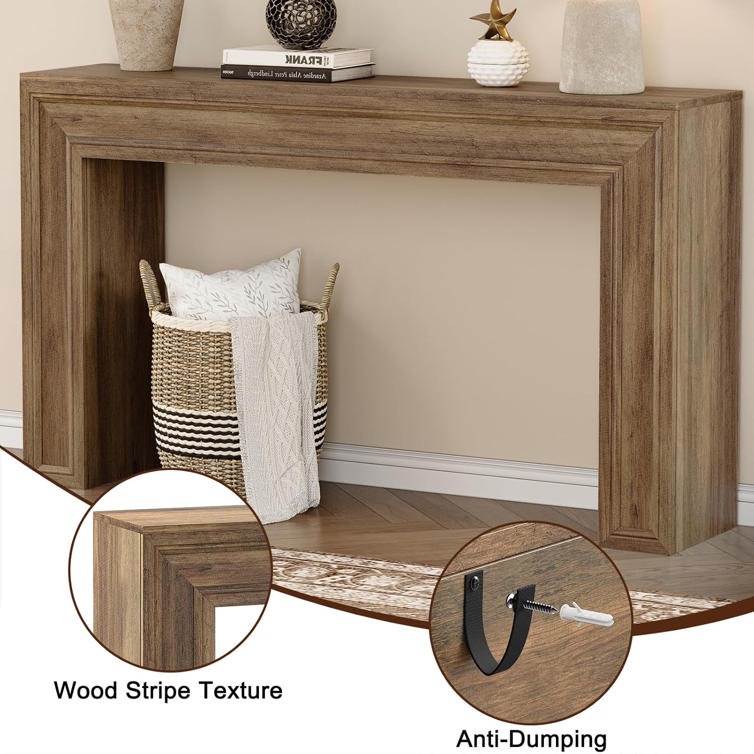 - FARMHOUSE & COUNTRY STYLE: Drawing inspiration from farmhouse design, this woodgrain console has a vintage yet minimalist appeal that creates a warm and pleasant atmosphere in your home.