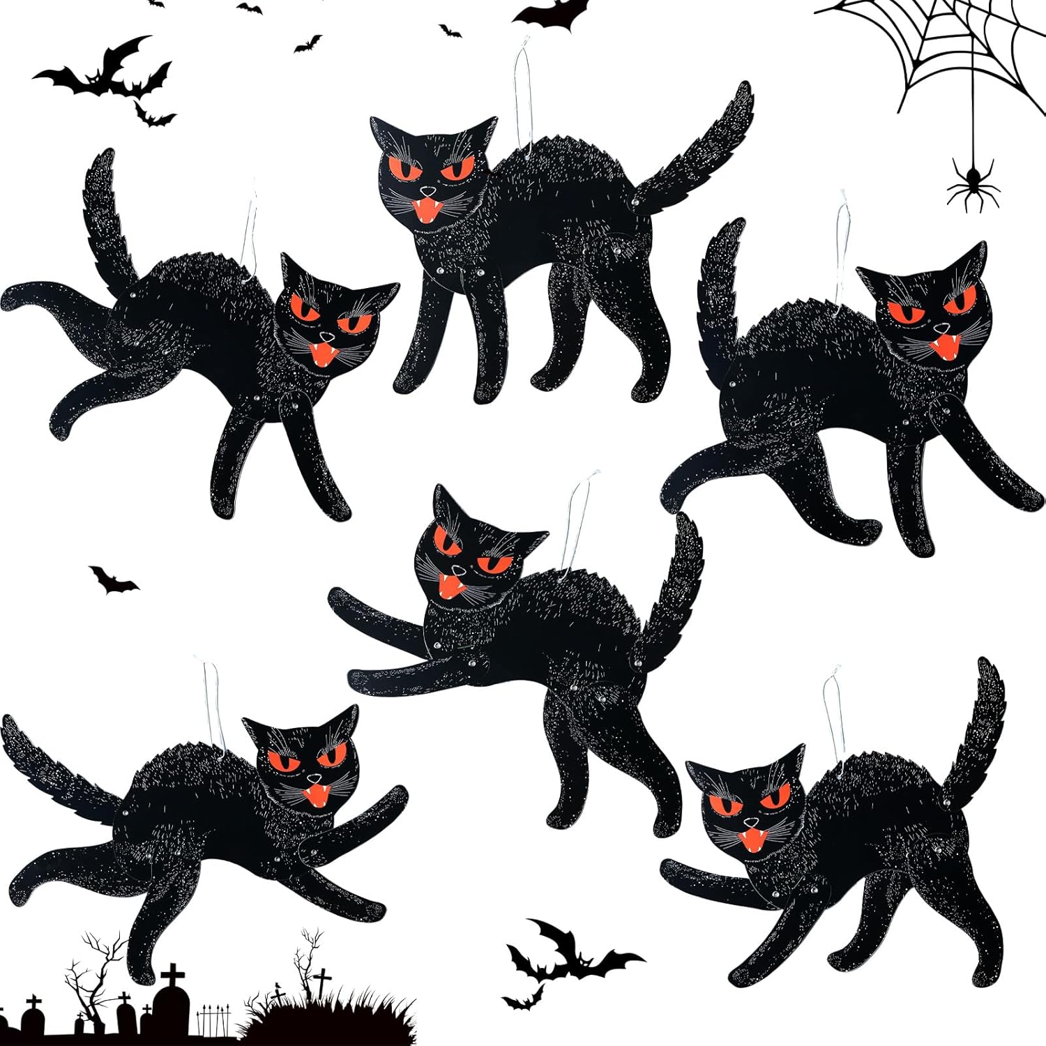 - Vintage Halloween Decorations: our Halloween vintage cat decoration are designed in novel ways; Feel the nostalgic charm of vintage Halloween with these halloween cat scratcher; They are made of durable cardstock material; Each cat has eye catching details, movable limbs and tails, flexible joints and arched backs, making it an ideal decoration for cat lovers' homes; You can stick it on doors, windows and walls to add a touch of retro to your Halloween decorations
