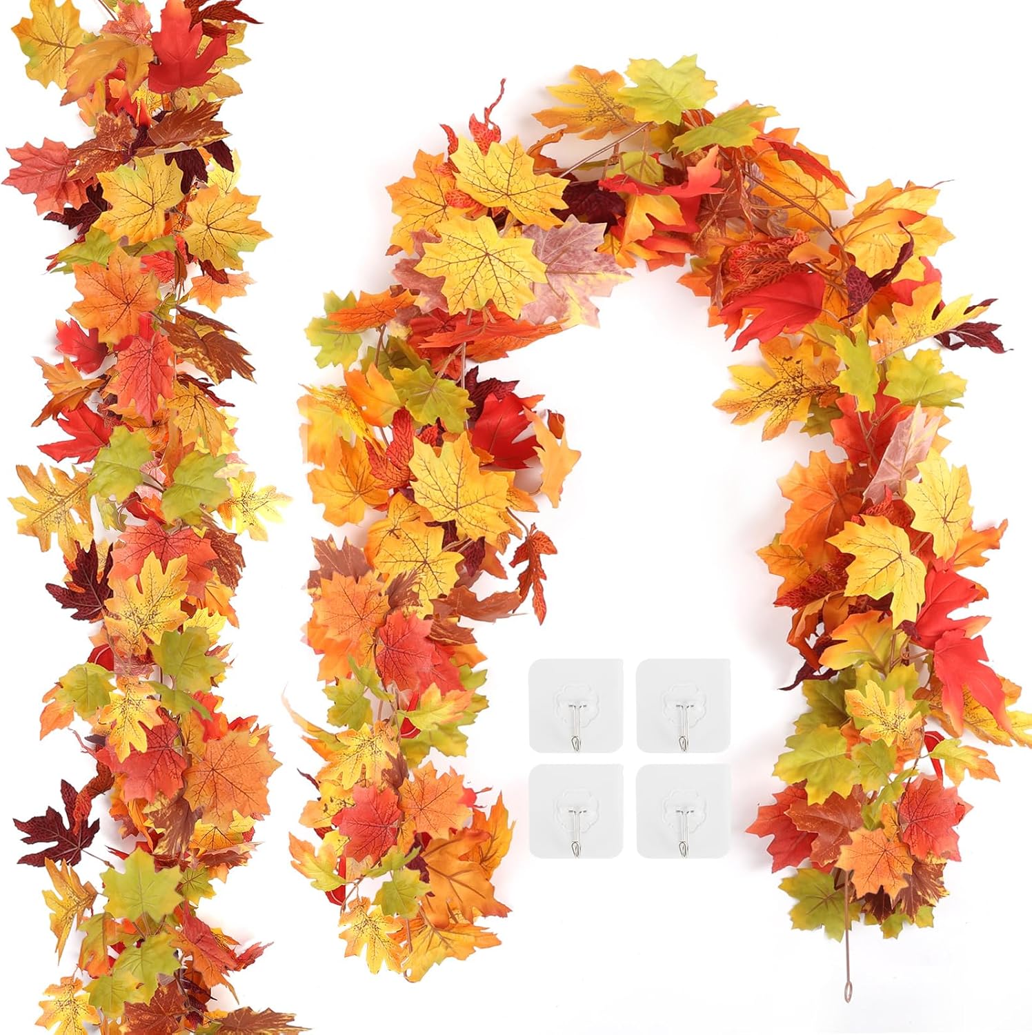 - Premium Materials: Our fall garland is crafted from silk clothes.Equipped with 2 hook accessories for easy hanging, its flexible plastic rod allows creative shaping for fall decor. Perfect for fall outside decor, it integrates seamlessly into fall garland setups like maple leaf garland.