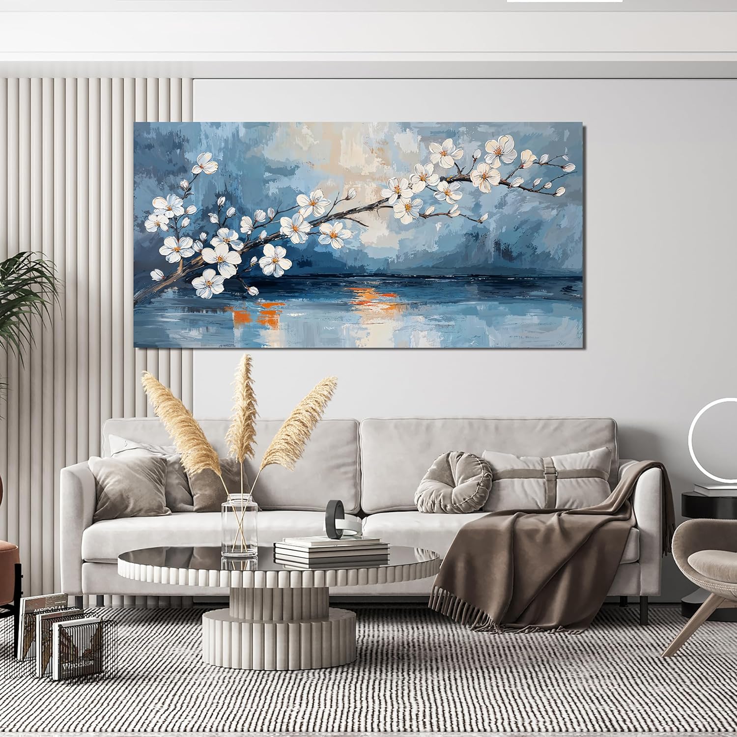 Canvas Wall Art Decor Large Vintage Coastal Wall Art Decorations White Flower Wall Art Prints Wall Art Pictures for Living Room Canvas Art Wall Decor Artwork for Walls Bedroom Office Decor 24" X 48"