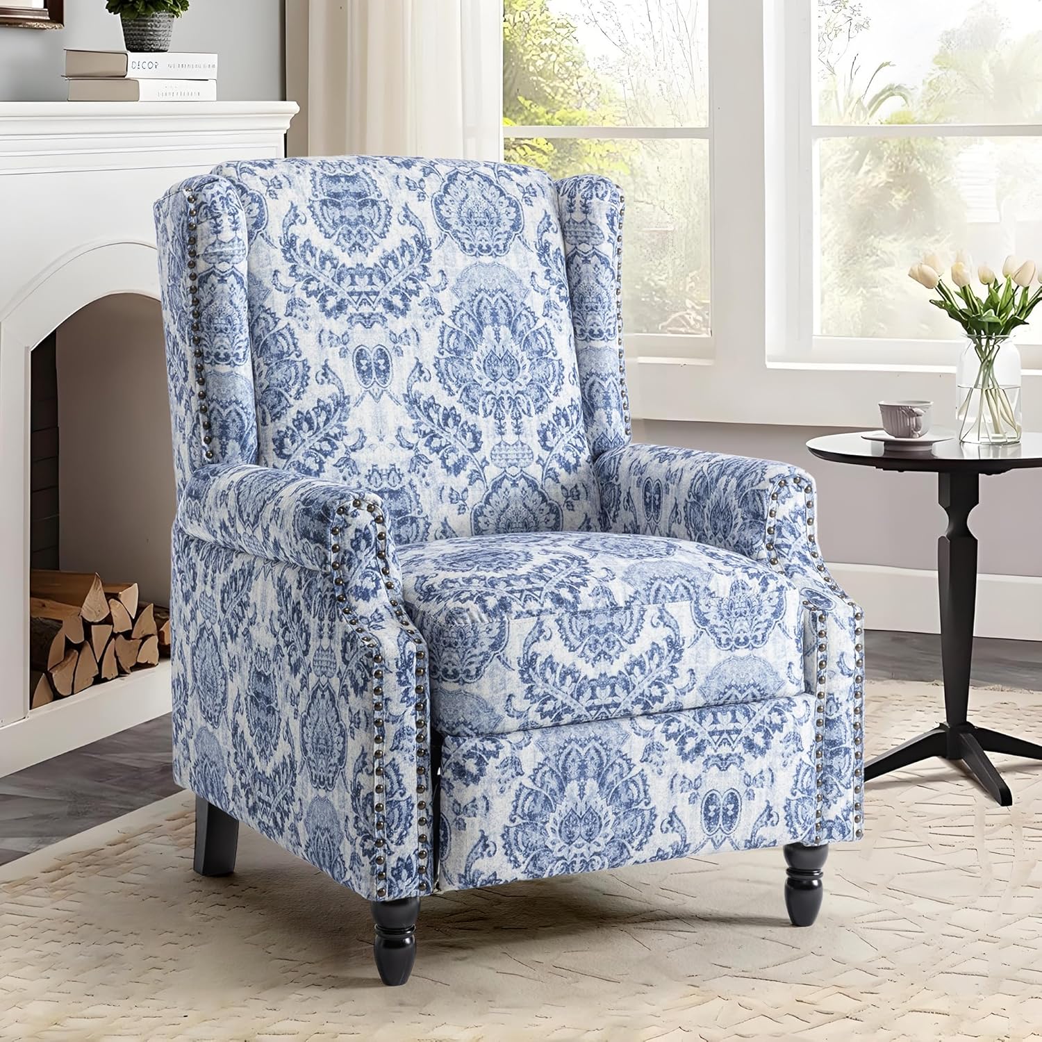 - Attractive Printed Pattern Chair - This armchair features nailhead trim, rolled armrests, vintage wooden legs and a beautiful patterned design for a traditional and chic look. Ideal for waiting room, living room, bedroom, dressing room, dressing room, office, reception room.
