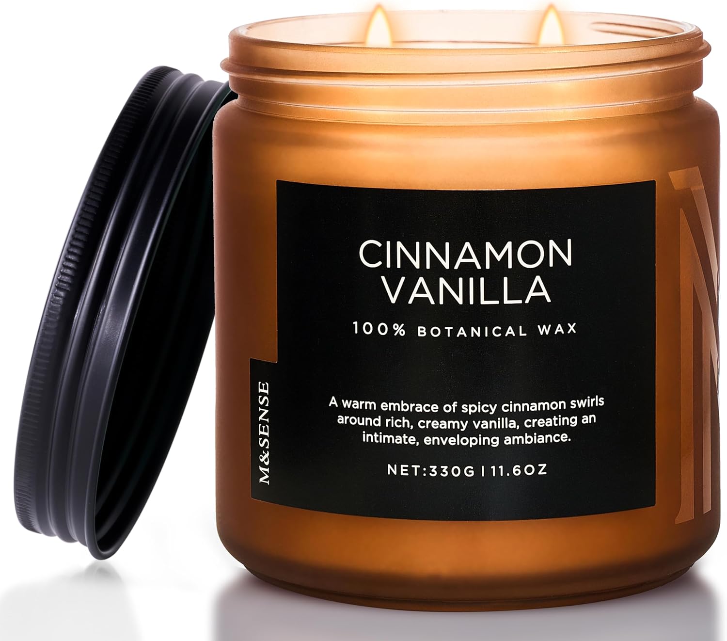 M&SENSE Cinnamon Vanilla Fall Scented Candles for Home, Natural Soy Wax 11.6oz 70 Hours Large Long Lasting Strong Scented Classic Christmas Holiday 2 Wicks Candle Gift Home Decor