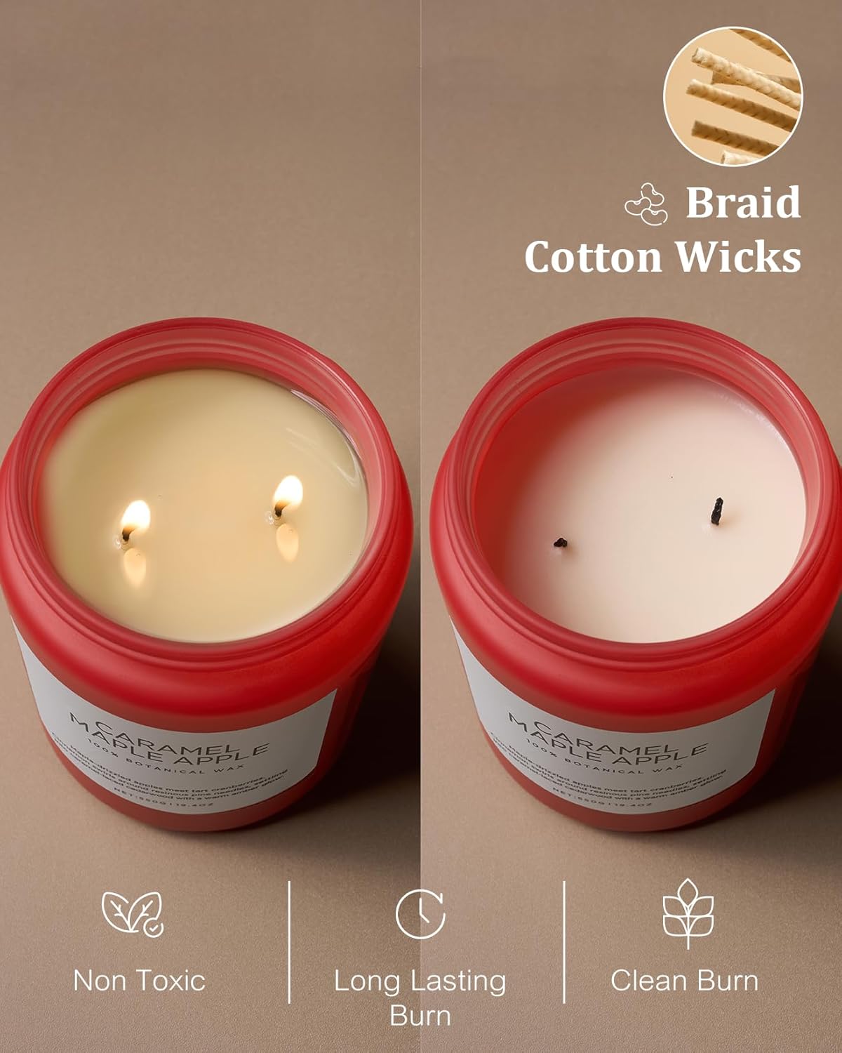 M&SENSE Caramel Apple Pie Candles for Home Scented, Natural Soy Wax 19.4oz Long Lasting 110 Hours Clean Non Toxic Large 2 Wick Candle Gifts for Thanksgiving Housewarming