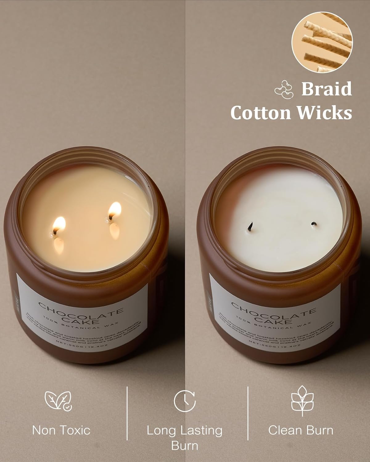- Clean Consistent & Even Burn - Using 2 American made lead-free cotton wicks for a even burn result. They're cotton flat braid wicks with paper throughout, providing increased rigidity and burn more consistently than 100% cotton wicks. Designed to reduce carbon buildup which leads to black soot