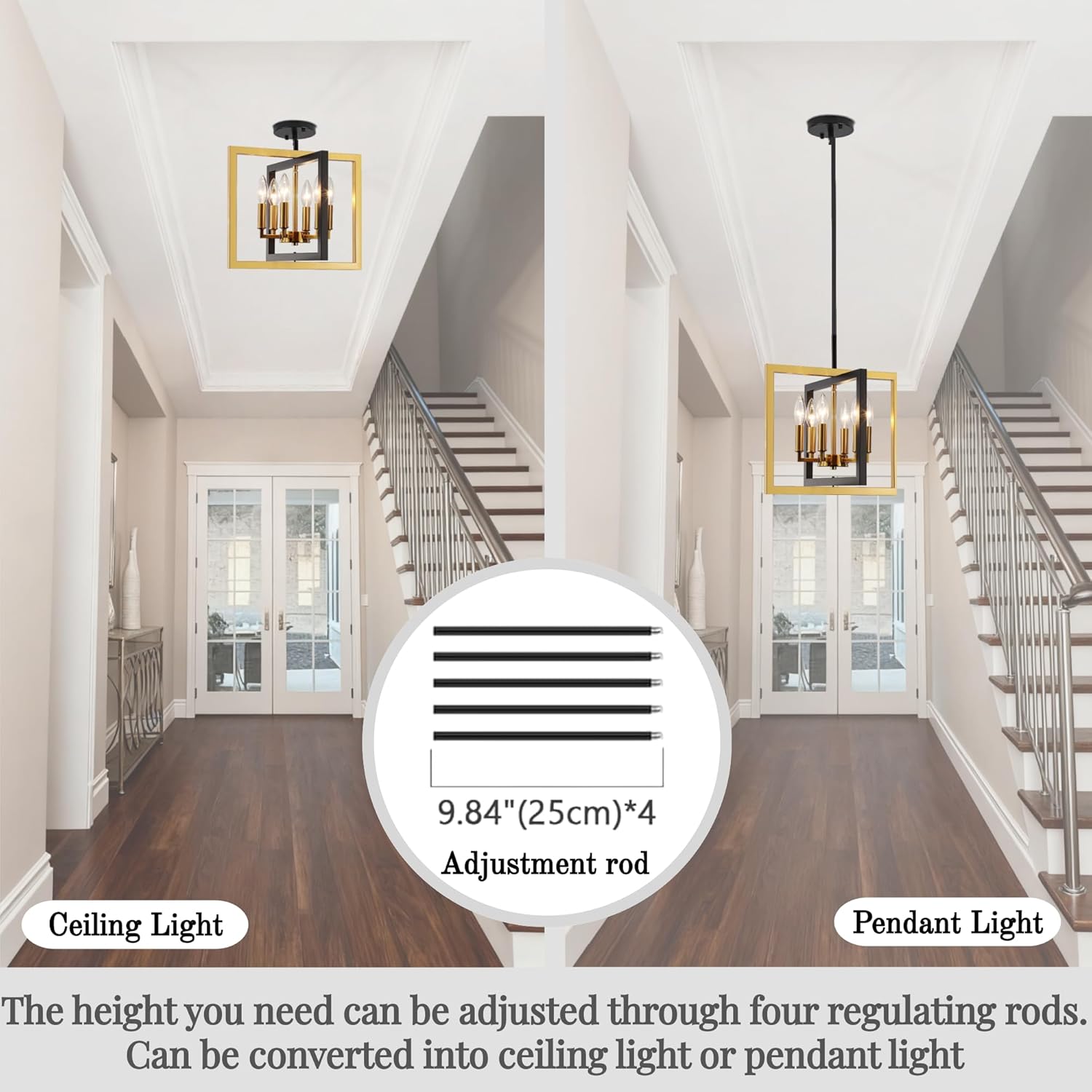 - Ajustable Height & Angle: Hanging Height: 15.8" - 55.1". The kitchen pendant light features 4 adjustable rods, each measuring 9.84 inches, allowing you to customize the hanging height of this dining room chandelier to suit your space and create the ideal atmosphere. Additionally, the rod can be rotated up to 180°, the hanging light fixture is allowed to be installed on sloped or flat ceilings