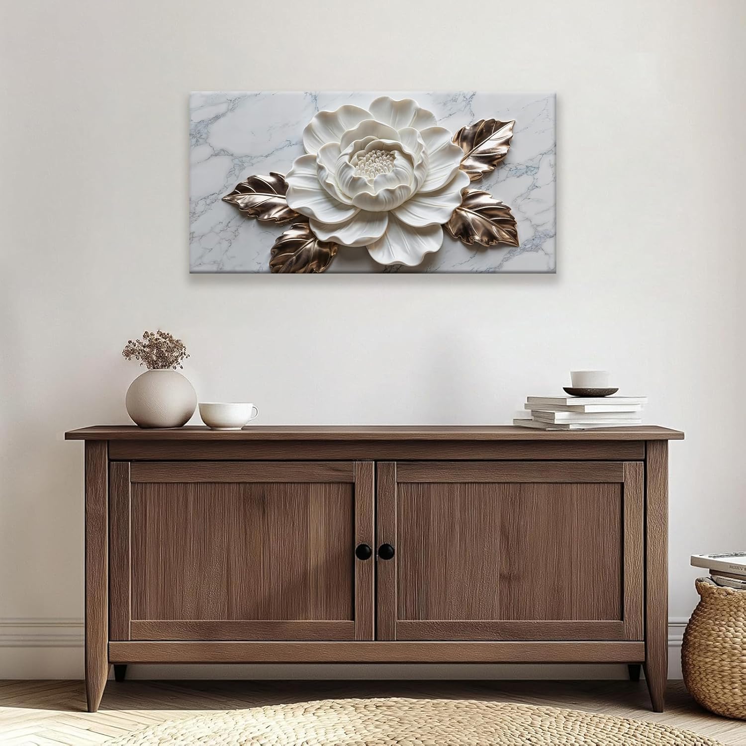 Suconvng Canvas Art Wall Decor Print Paintings Marble Texture White Flower Wall Art Prints Pictures Ready To Hang Pictures For Bedroom Bathroom Office Kitchen Home Wall Decor Artwork 20" × 40"