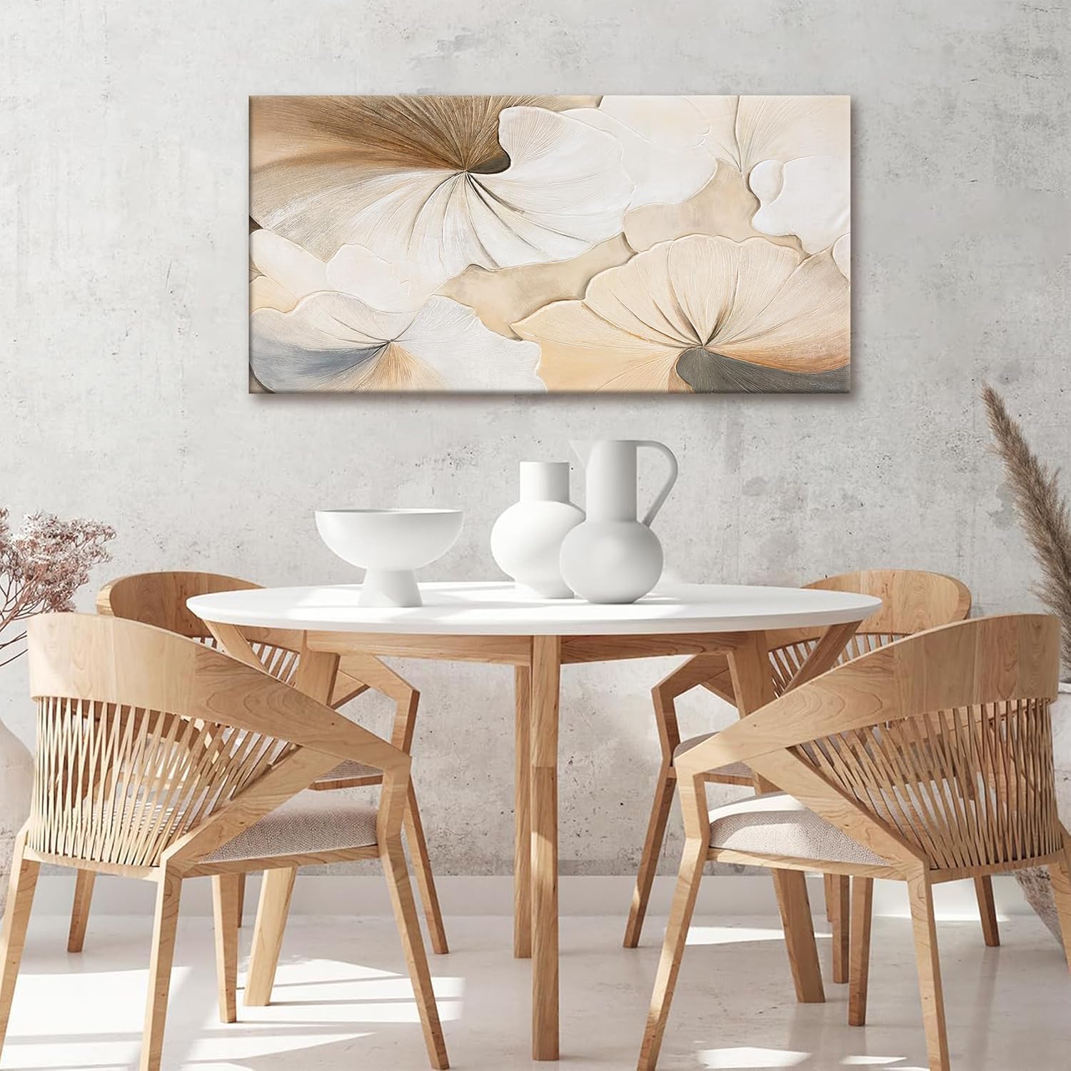 Suconvng Canvas Art Wall Decor Modern Minimalist Wall Decor Abstract Flower Paintings Brown White Flower Wall Art Prints Floral Art Pictures For Bedroom Kitchen Office Artwork 20"×40"