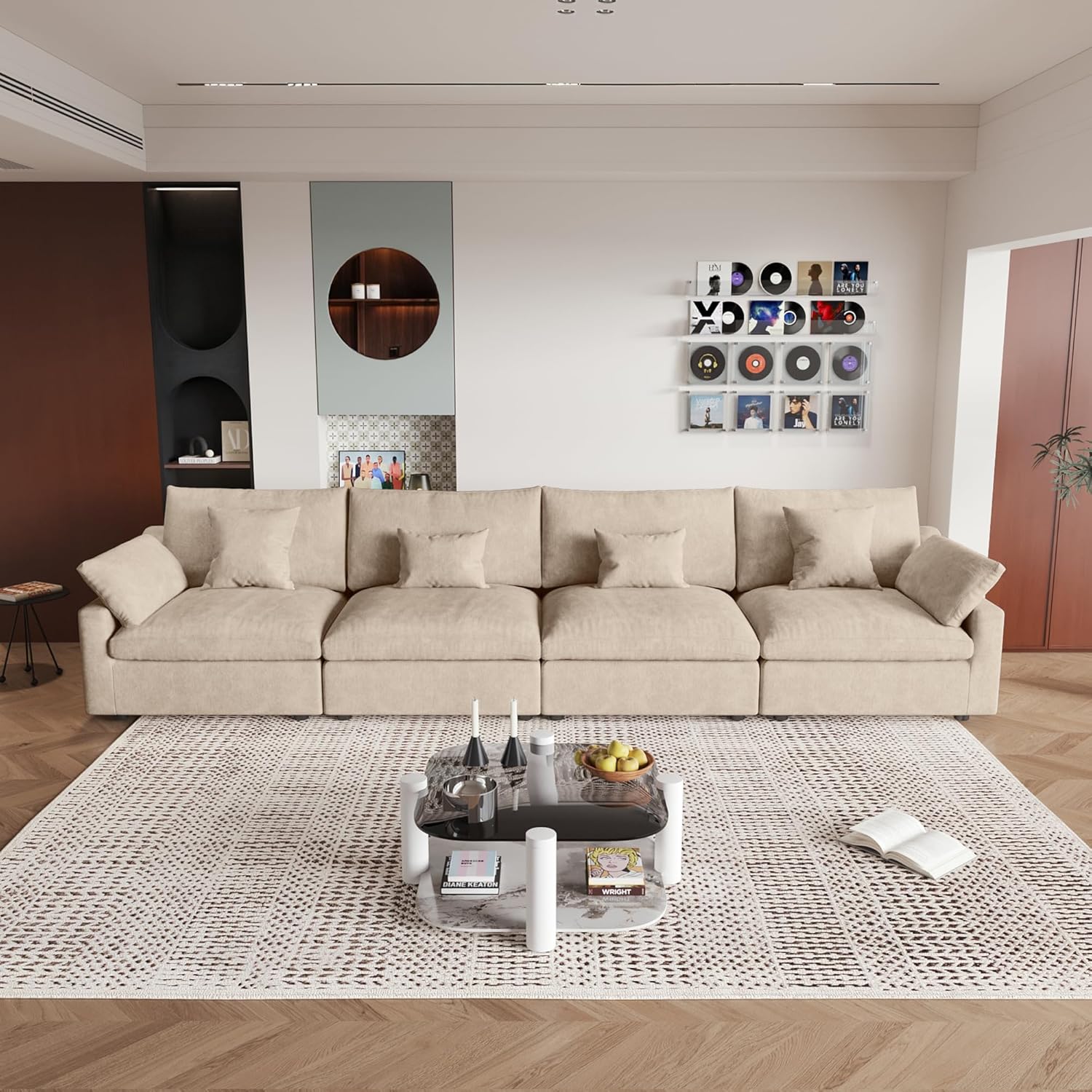 - β [Comfortable Cushions]The cushion of this modular sofa is filled with down and velvet, increasing the comfort and rebound performance of the sofa cushion, bringing you a more comfortable sitting and lying feeling, allowing you to relax completely on the cloud sofa.