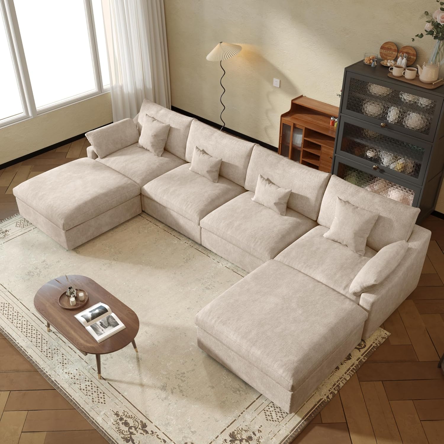 JACH U-Shaped Sectional Couches for Living Room, Cloud Sectional Couch with Deep Seat, 155.9" Modular Sofa with Chaise, Covers Removeable & Washable, Sofas Furniture for Living Room, Khaki