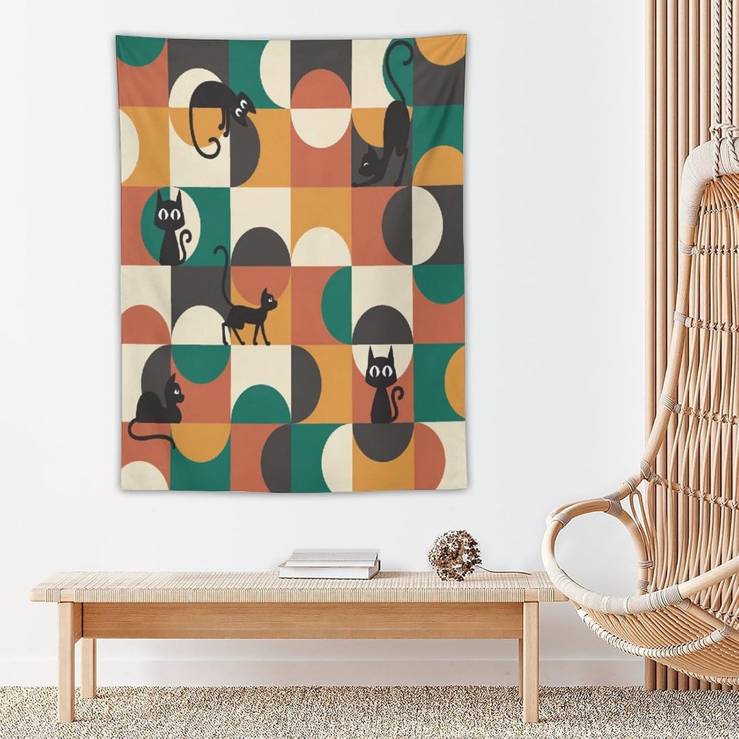 ICMOLYYENLO Boho Medieval Cat Tapestry, Abstract Atomic Starburst Geometric Aesthetic Art Wall Hanging For Bedroom Living Room Dormitory 50x60 Inches