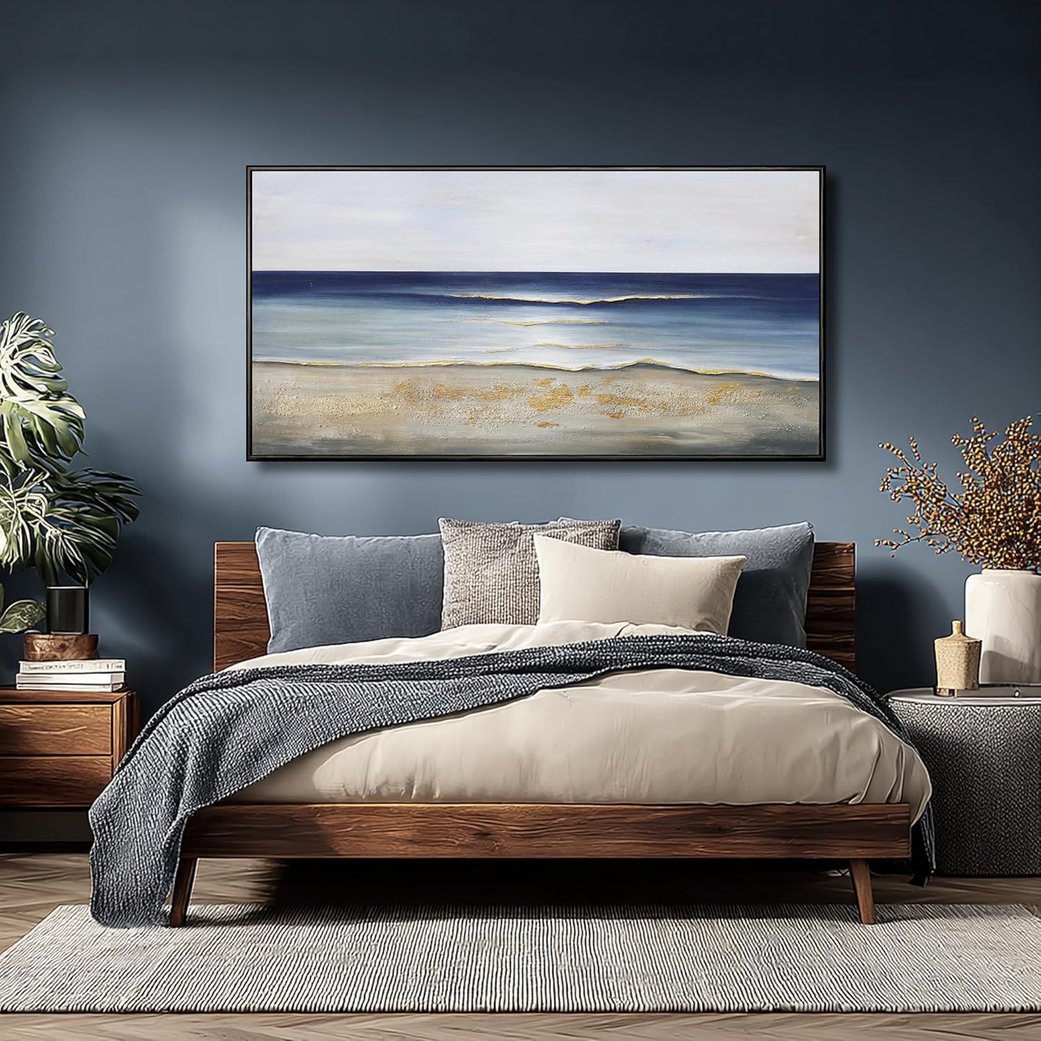 Yuaxker Ocean Wall Art Large Framed Wall Decor Blue and Gold Artwork Room Decor Aesthetic for Living Room Bedroom Dining Room Office Home Decor 30x60 Inch