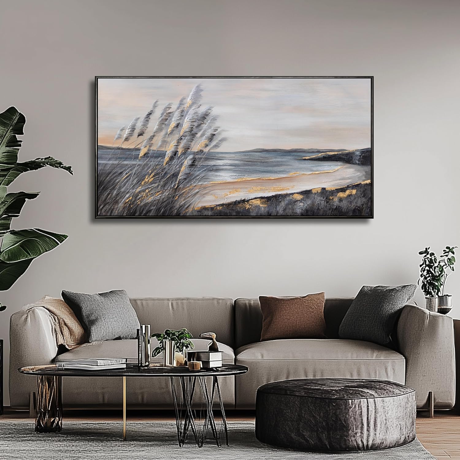 Yuaxker Large Ocean Wall Art Black and Gold Wall Decor Framed Hanging Canvas Painting Modern Aesthetic Artwork for Living Room Bedroom Dining Room Office Home Decor 30x60 Inch