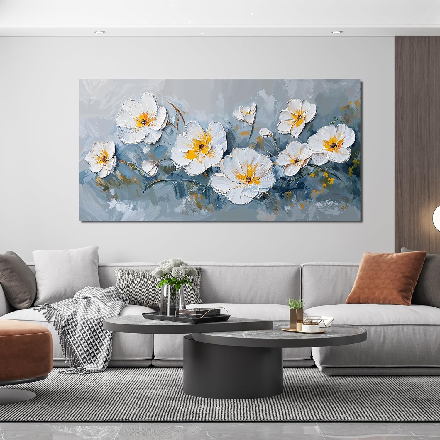 KUPTEU Canvas Wall Art Decor Large Wall Art Pictures for Living Room White Flowers Wall Art Prints Canvas Art Wall Decor Hallway Decorations Artwork for Walls Bedroom Home Aesthetic Decor 24" X 48"