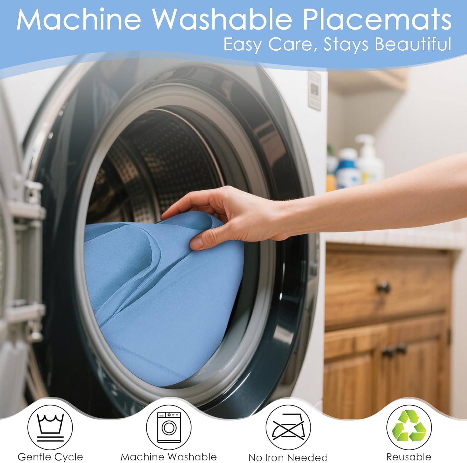 - Effortless Cleaning & Care: These machine washable placemats are easy to clean and maintain - simply use a gentle cycle and smooth with a low-temperature iron when needed. No hassle, just simple upkeep for everyday use.