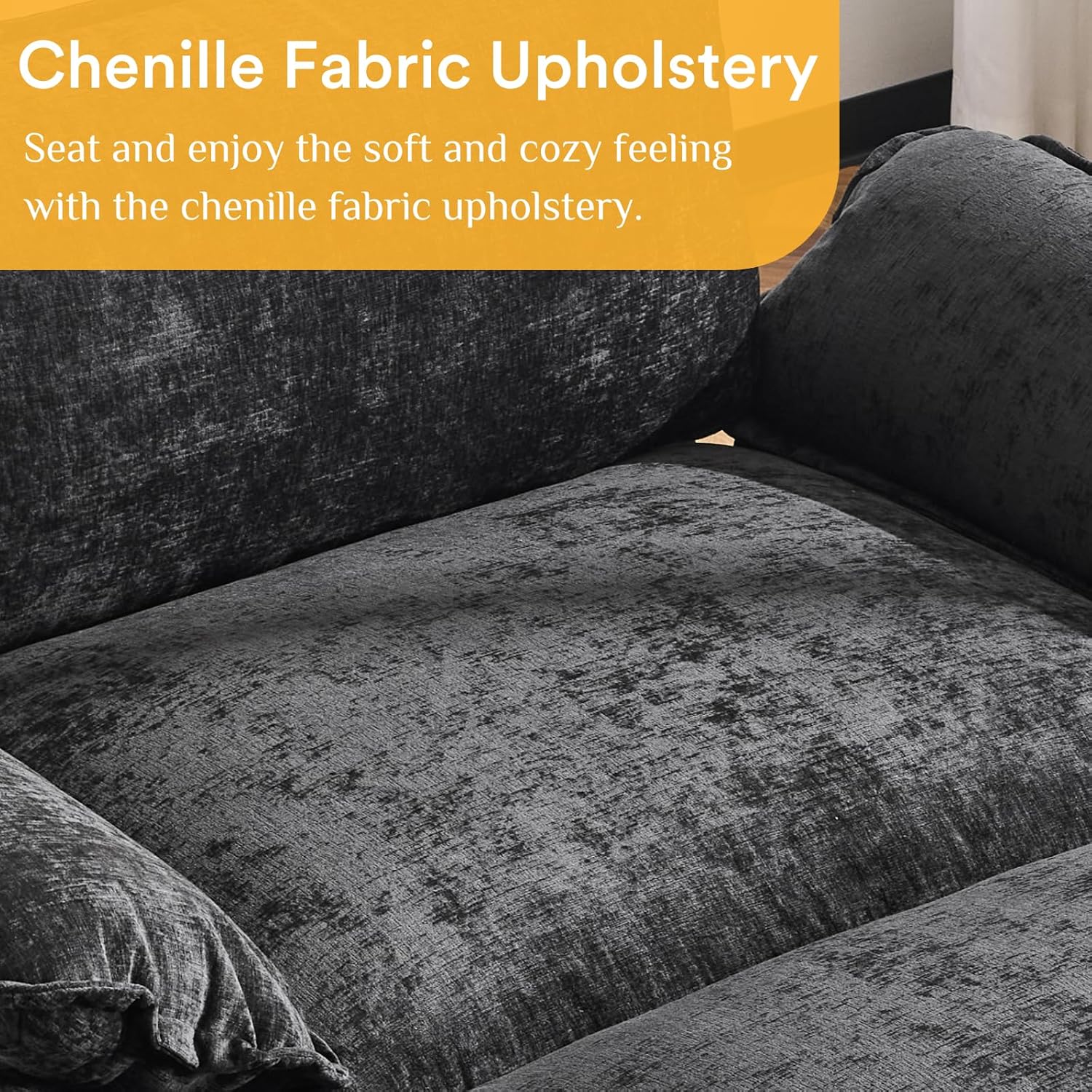 Karl home Oversized Accent Chair Chenille Sofa with Chaise, Modern Sofa Chair with Removable Ottoman Modular 1-Seater Couch and 2-Layer Ottoman for Living Room, Apartment, Studio, Black