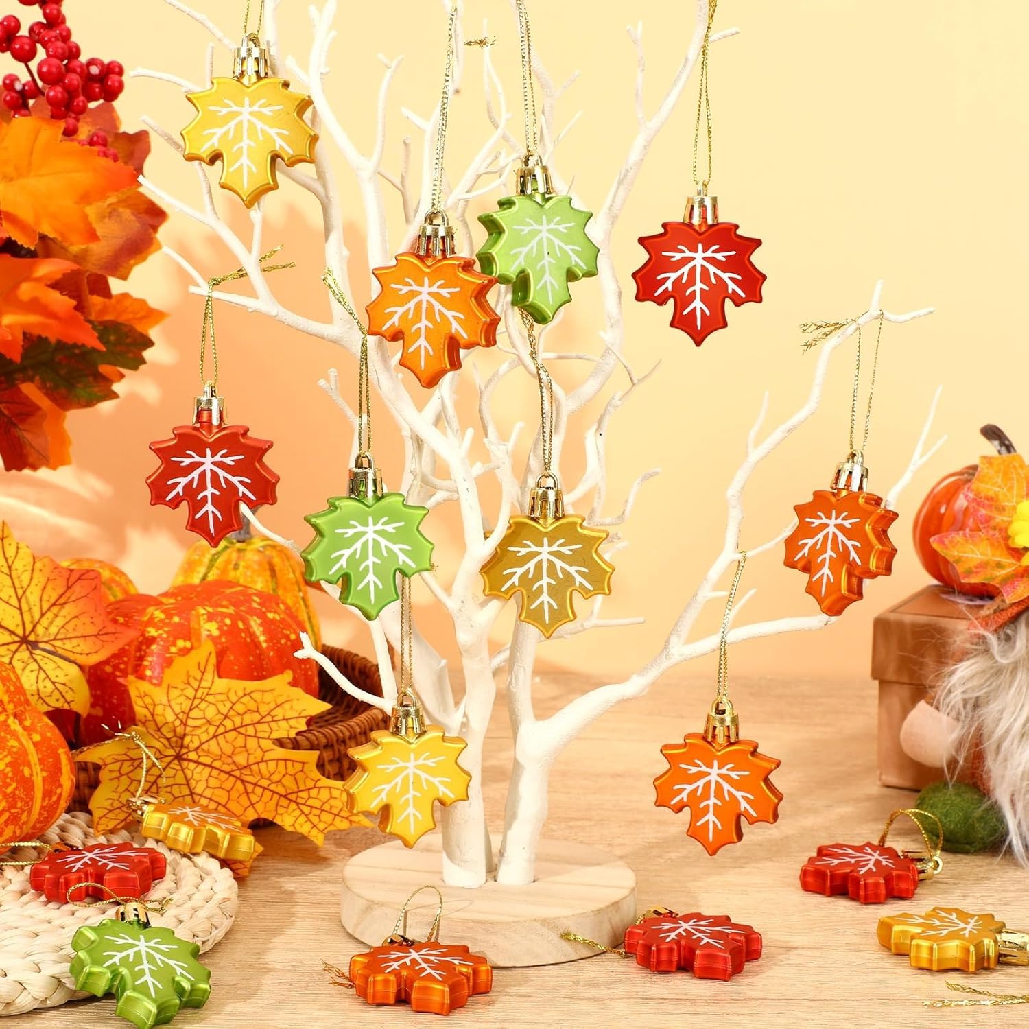 - Fall Maple Leaves Ornaments: The fall tree decorations set includes 24 pieces 3D fall maple leaf ornaments, 6 different words matched with classic red, orange, gold and green, and sufficient quantity and vivid colors can be used to create a warm and unique holiday atmosphere. Hanging fall leaves ornaments are ideal decorations for outdoor and indoor parties in autumn