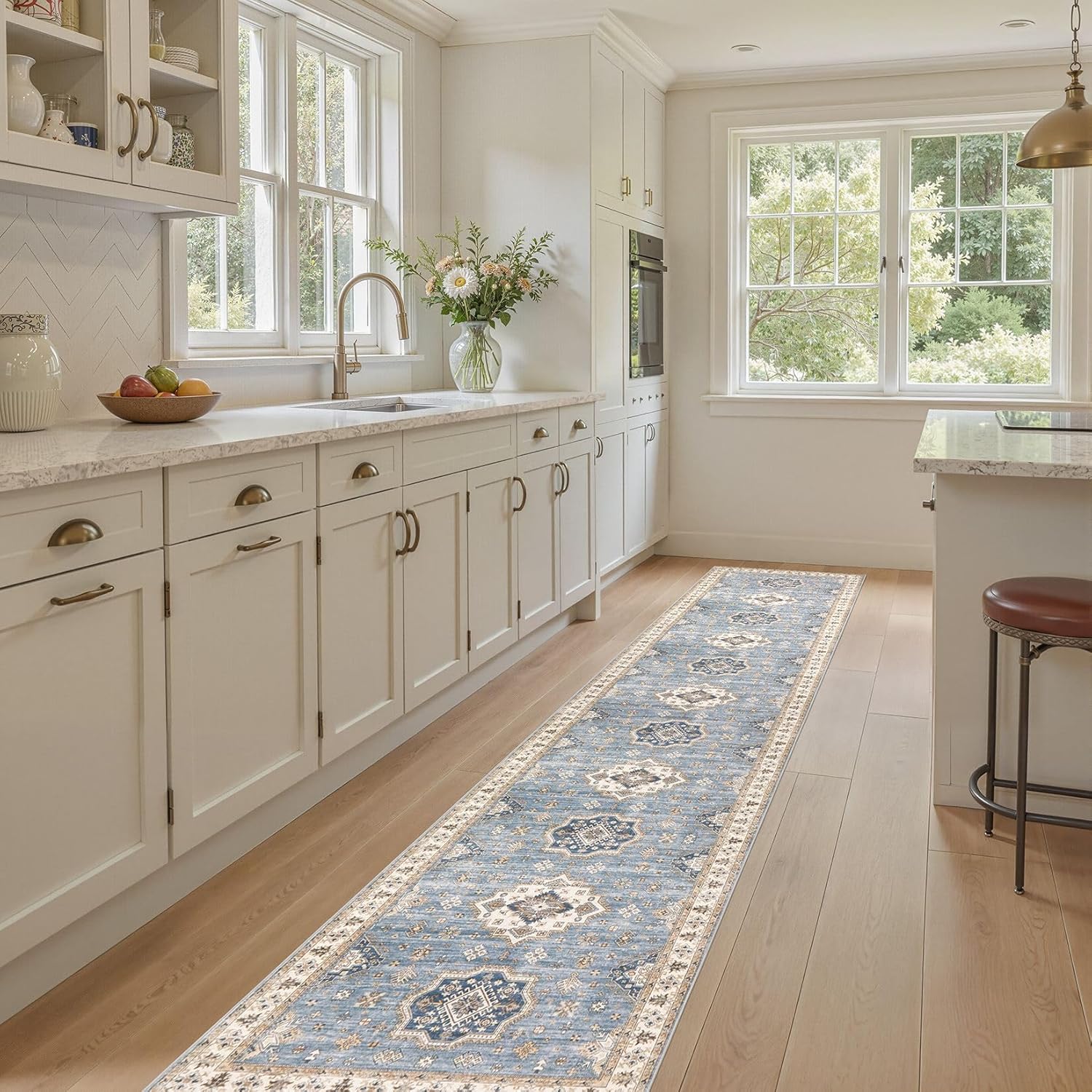 Washable 2.6x12 Runner Rug - Area Rugs Neutral Vintage Distressed Floral Farmhouse Boho Large Soft Floor Rug Indoor Carpet for Hallway Entryway Kitchen Home - Blue