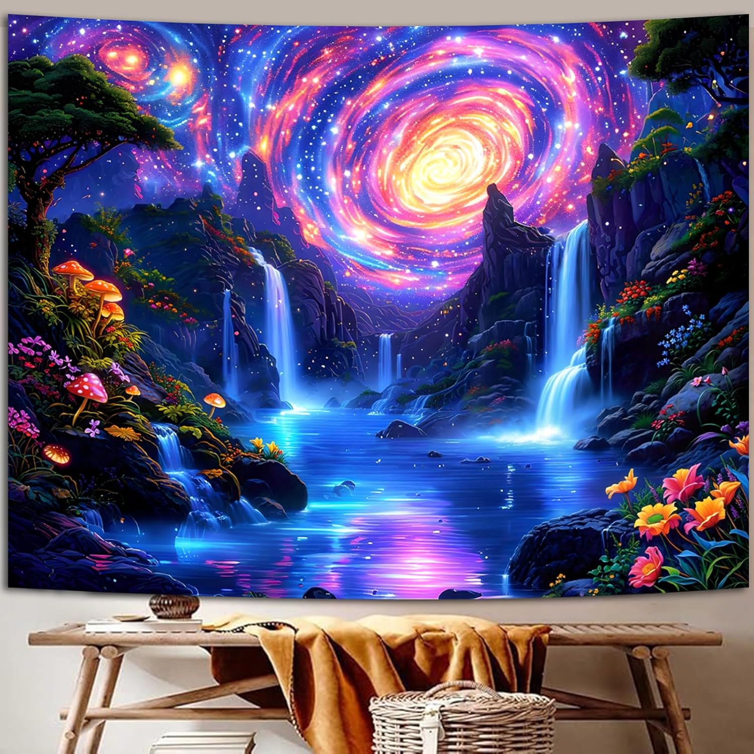 Manicer Blacklight Galaxy Waterfall Neon Tapestry β UV Reactive Glowing Cosmic Spiral Sky Glow in the Dark Nature Fantasy Landscape Wall Art for Bedroom β 51.2" x 59.1"